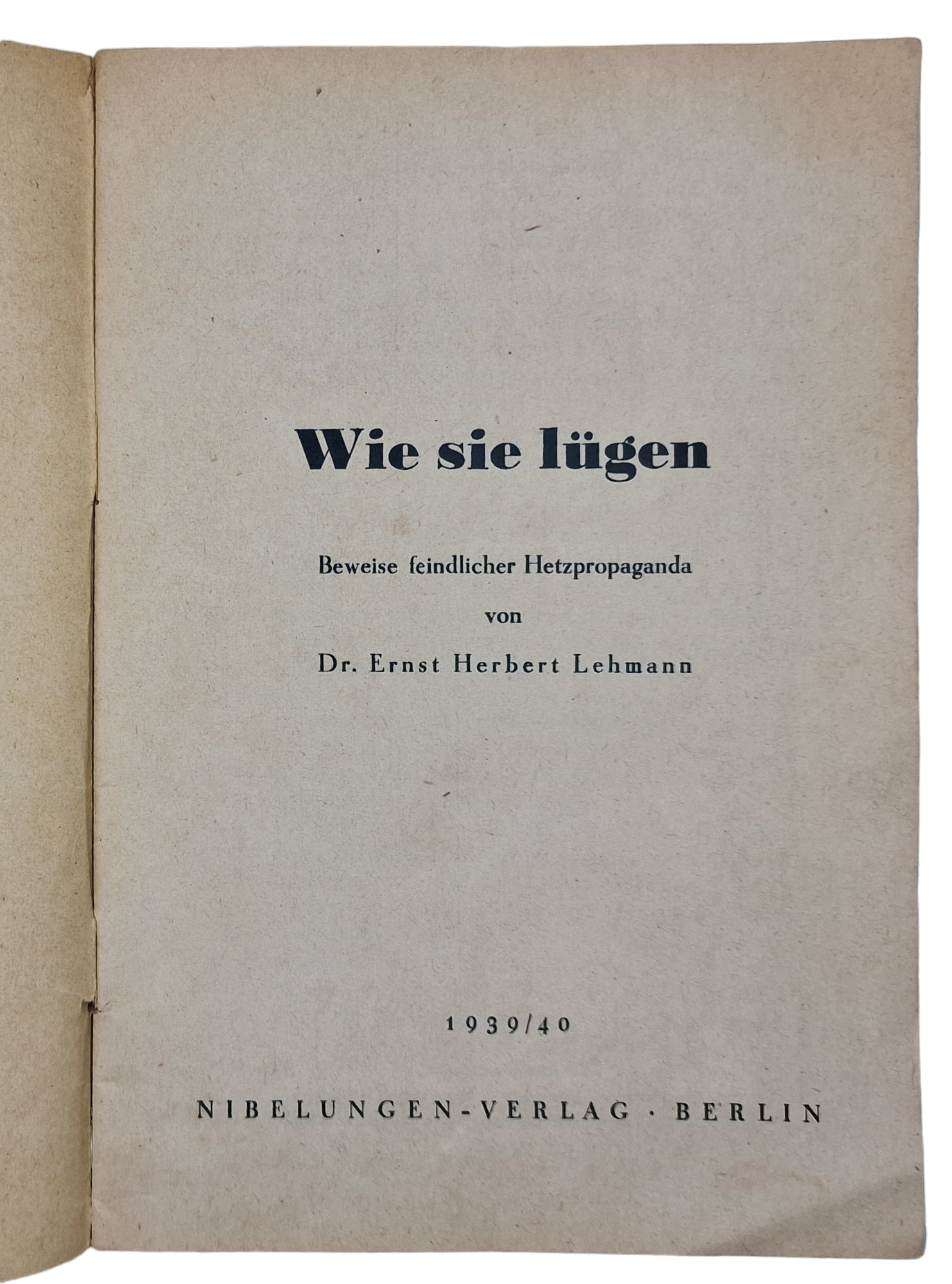 Original WW2 German Brochure - Wie sie lügen, Ernst Herbert Lehmann (1940)