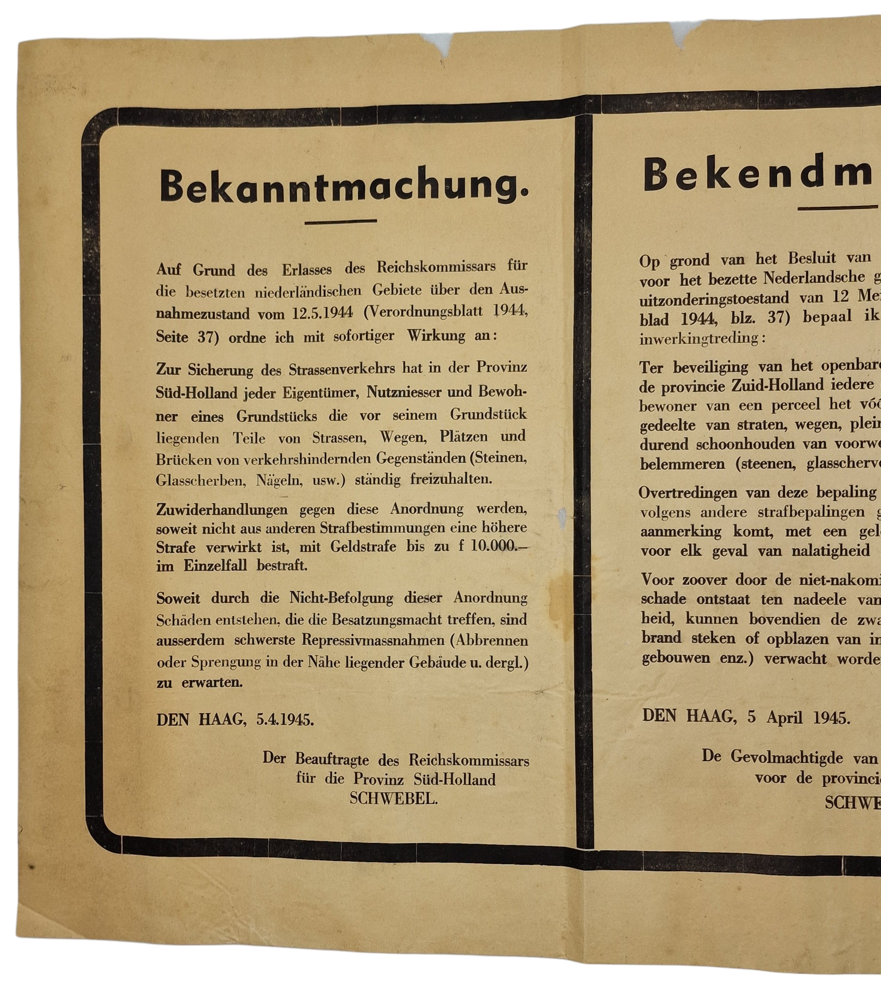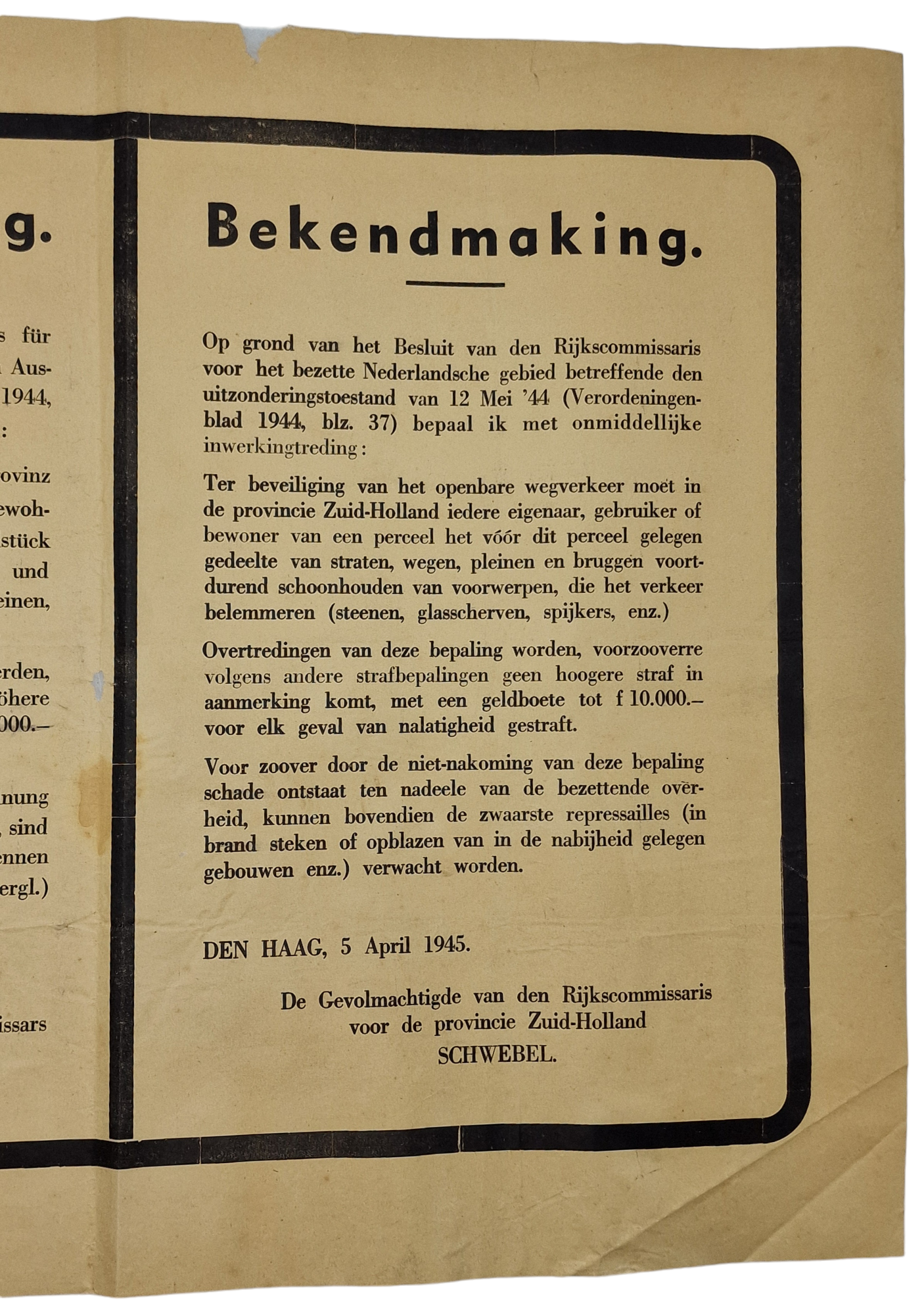 Originele Wo2 Nederlandse Poster - Bekendmaking tegen sabotage, Den Haag, April (1945)