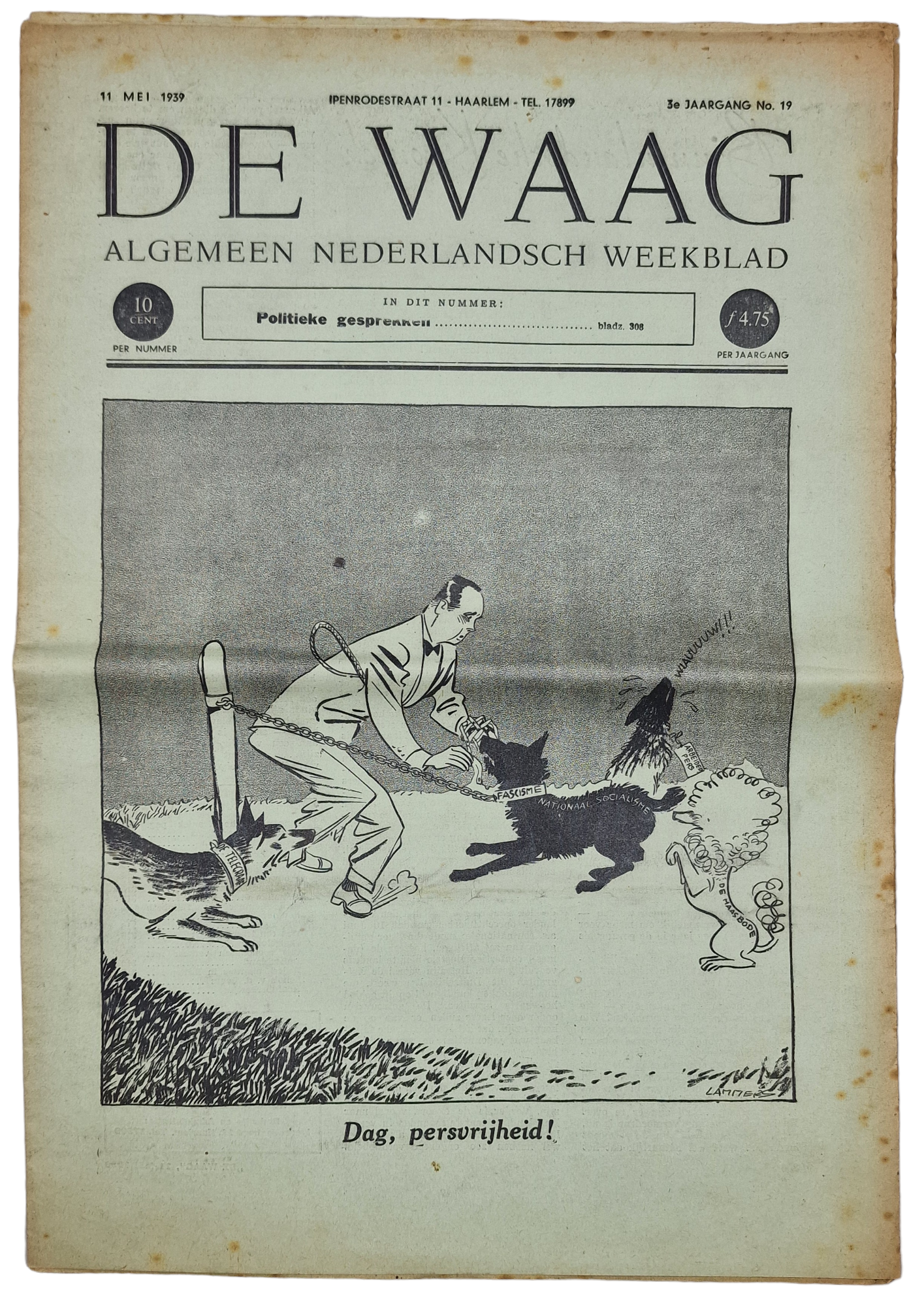 Originele Wo2 Nederlandse Collaboratie Krant - De Waag, 3rde jaargang No 19 (1939)
