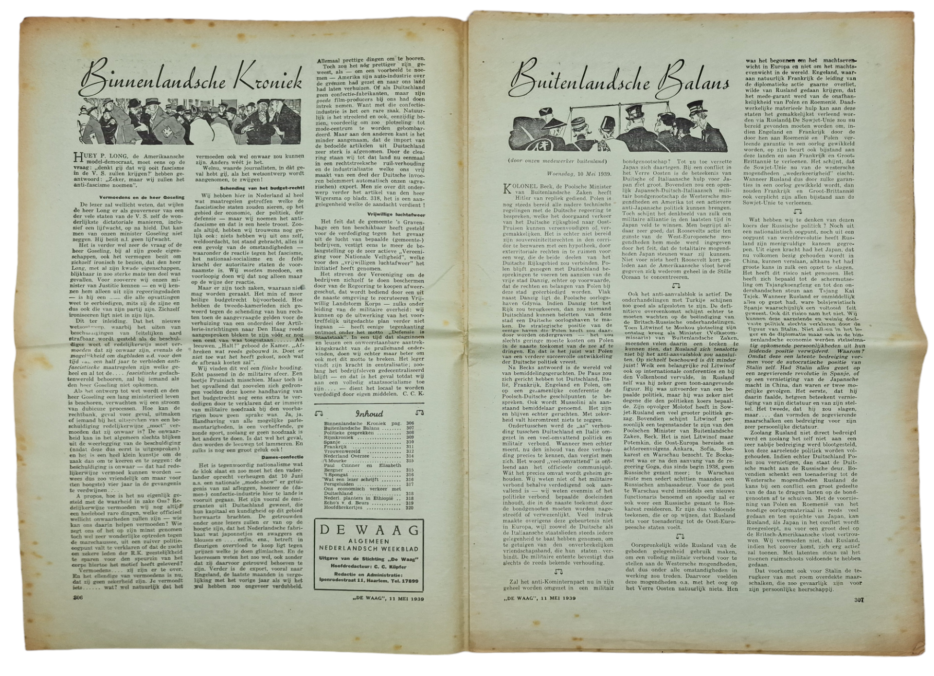 Original WW2 Dutch Collaboration Newspaper - De Waag, 3rd Year No 19 (1939)