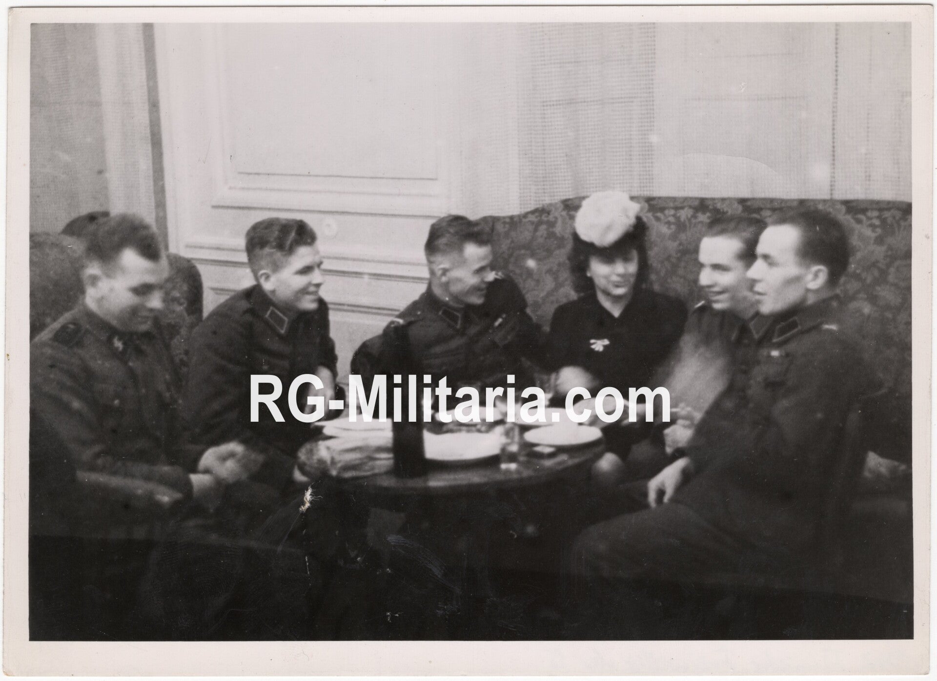 Original WW2 German Waffen SS Press Photo - Finnisch Waffen SS volunteer with Finnish soldiers (1942)