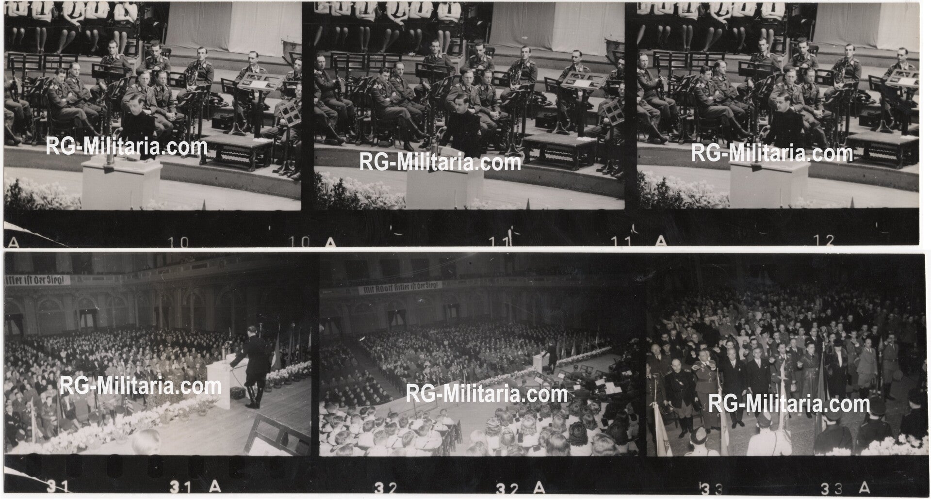 Original WW2 Dutch Collaboration NSB Press photo - Gathering to celebrate the birthday of Hitler, Fritz Schmidt, and Cornelis van Geelkerken speaking, Amsterdam (1943)