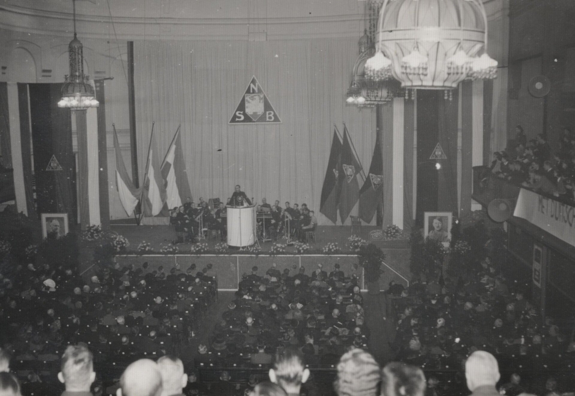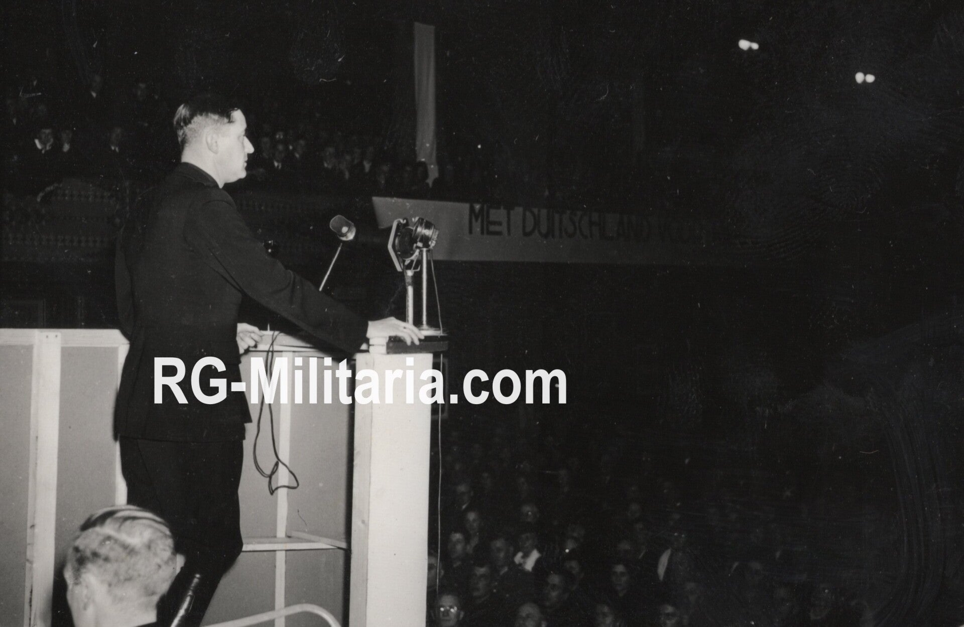 Original WW2 Dutch Collaboration NSB Press photo - NSB gathering with Van Geelkerken in Tivoli, Utrecht (1941)