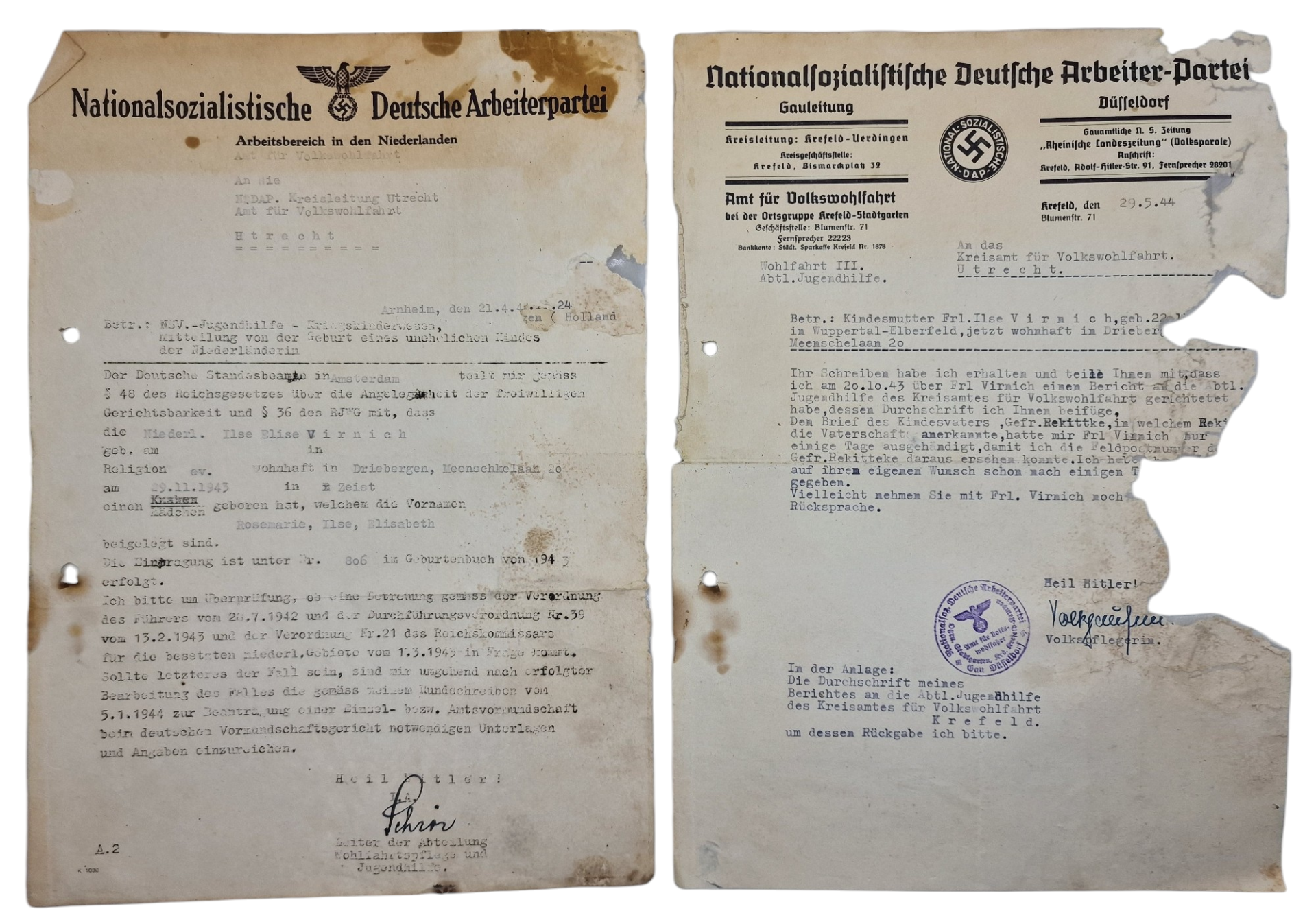 Original WW2 Dutch Collaboration Document - NSV-Jugendhilfe, Orphan child, Utrecht, Driebergen Zeist (1944)