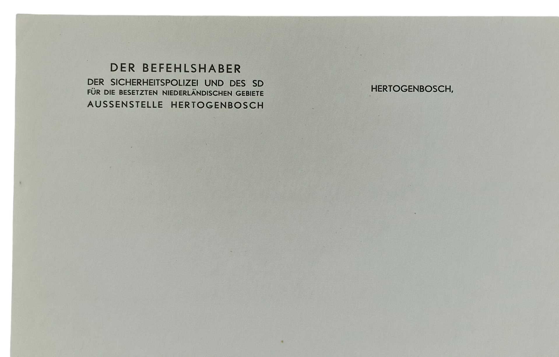 Original WW2 Dutch Collaboration Document - Writing paper Sicherheitspolizei und des SD, Aussenstelle Hertogenbosch