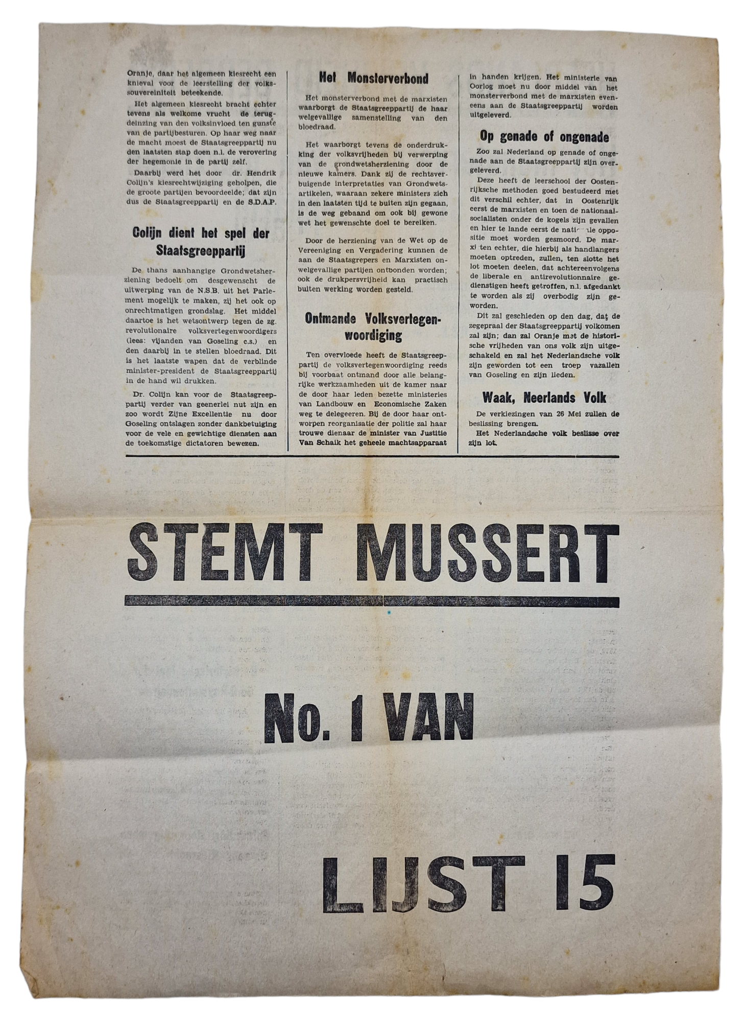 Original WW2 Dutch Collaboration NSB Document - Neerlands vrijheid bedreigd