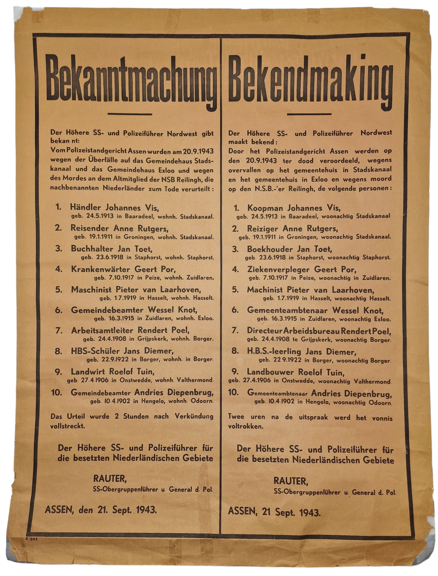 Original WW2 Dutch Waffen SS Poster - SS Execution of 10 resistance members, Assen, 21 September (1943)