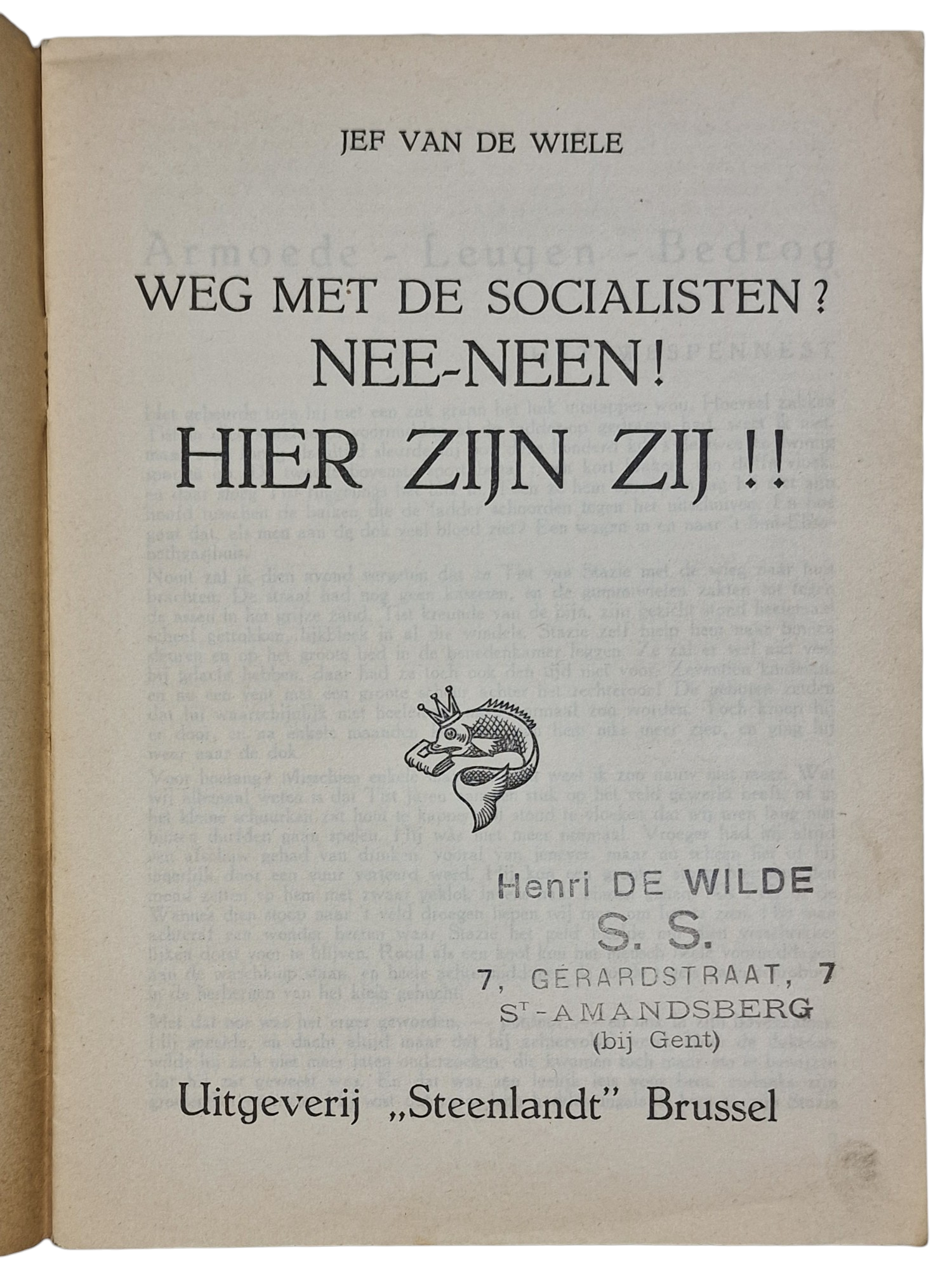 Original WW2 Flemish Collaboration Brochure - Weg met de socialisten? Nee - neen! Hier zijn ze!, Jef van de Wiele