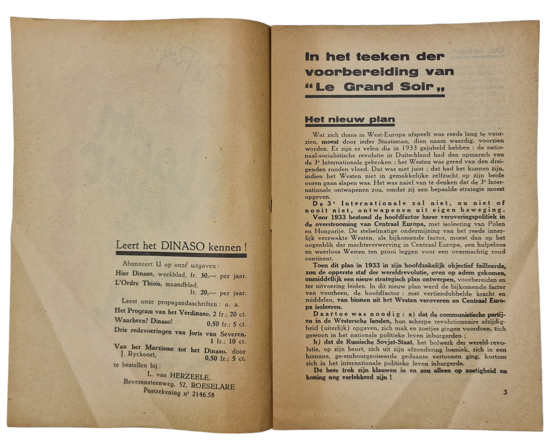 Original WW2 Flemish Collaboration Brochure - Dinaso, Alarm over het land, Pol Le Roy (1932)