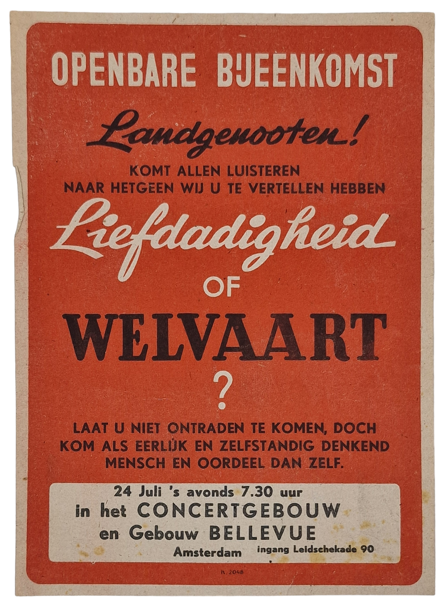 Original WW2 Dutch Collaboration NSB Document - Gathering, Liefdadigheid of Welvaart, Bellevue Amsterdam