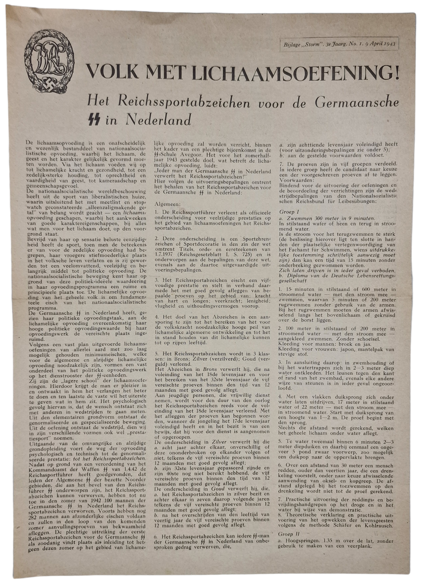 Original WW2 Dutch Waffen SS Document - Volk met Lichaamsoefening, Reichssportabzeichen Germaansche SS (1943)