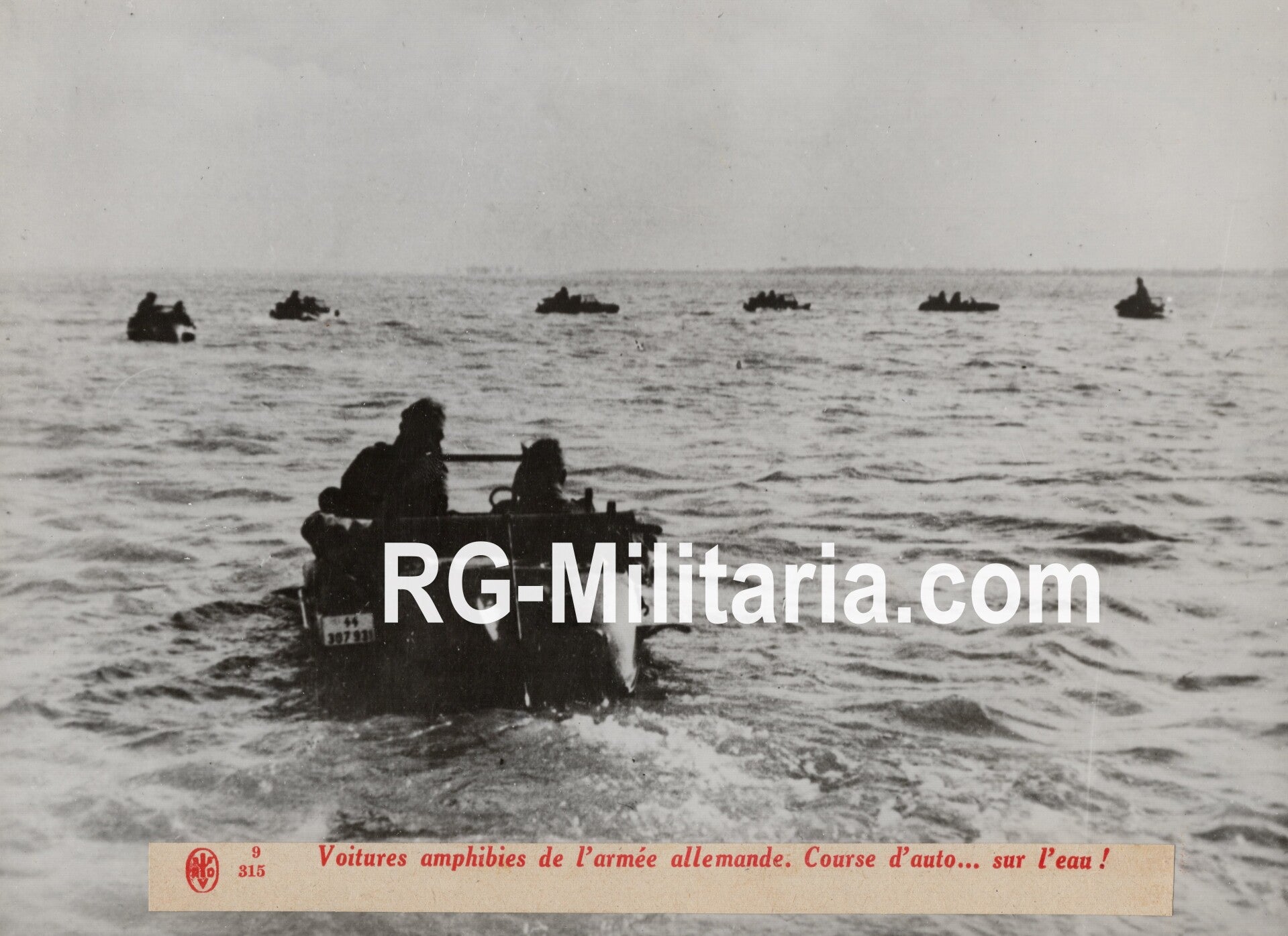 Original WW2 French Waffen SS Press Photo - SS VW Volkswagen Schwimmwagens in the water