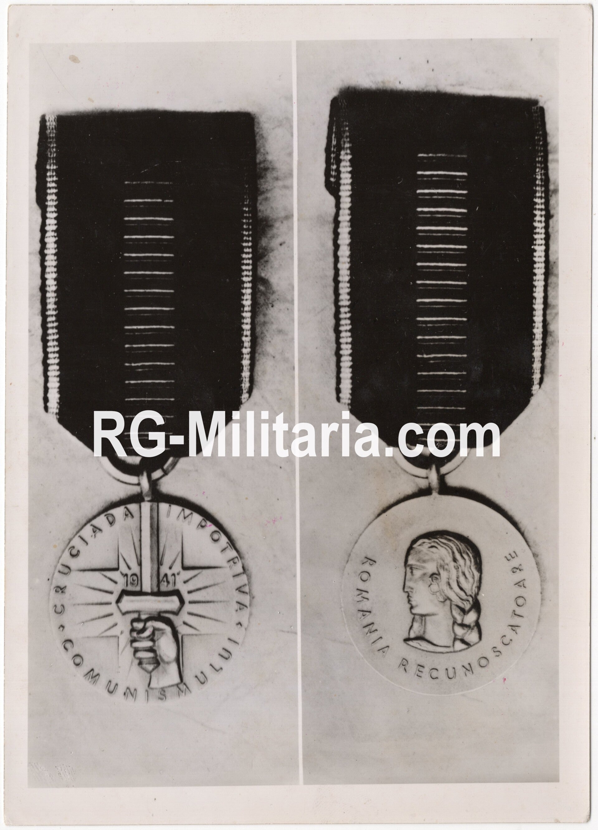 Originele Wo2 Duitse Persfoto - Romanian medal ''Kreuzzug gegen den Bolschewismus'' (1942)