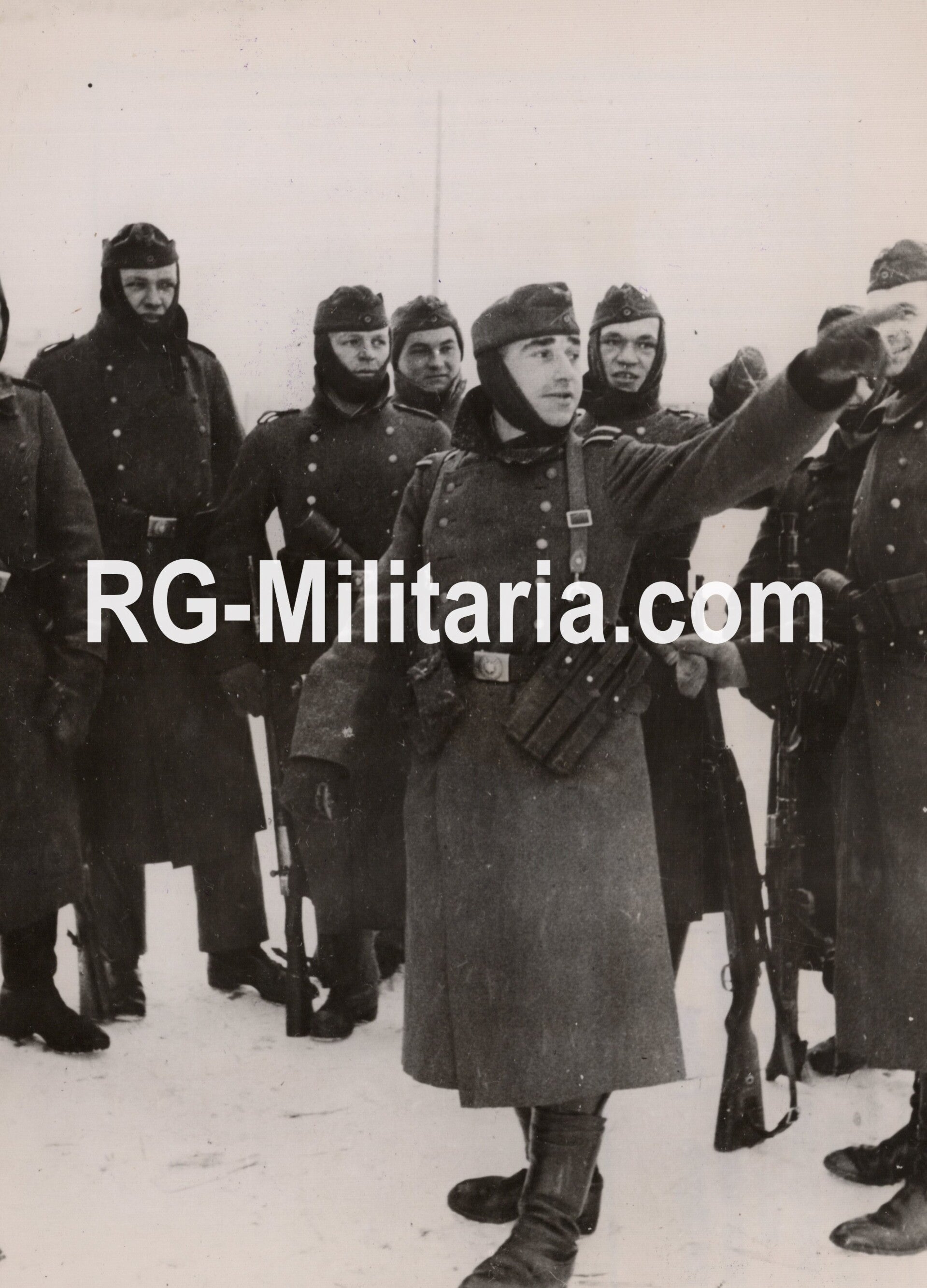 Original WW2 German Press Photo - Soldiers discussing tactics, MP40 pouches, Eastern Front (1942)