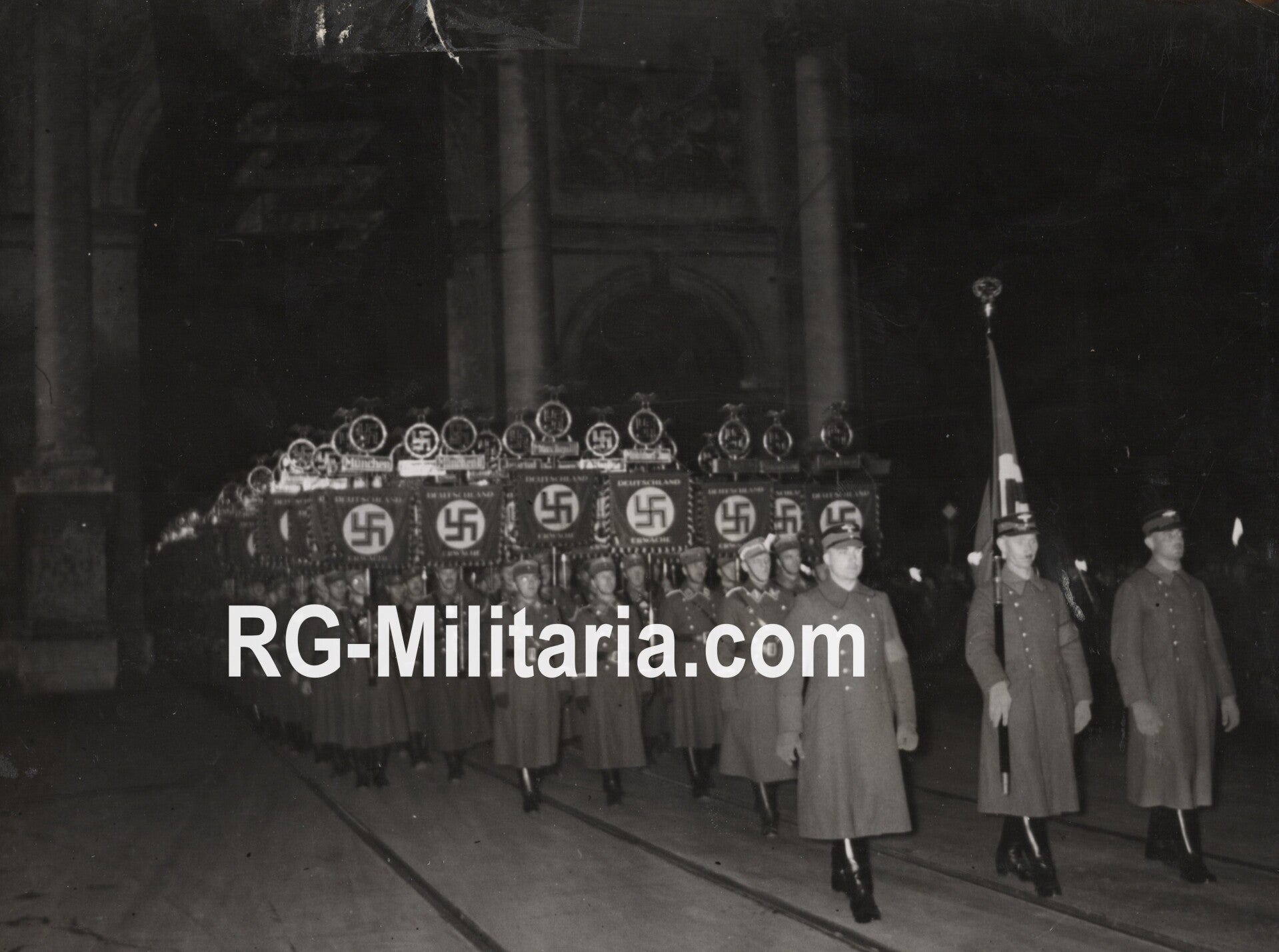 Original WW2 German Press Photo - Parade Feierstunde Feldherrnhalle, Deutschland Erwache standards (1936)