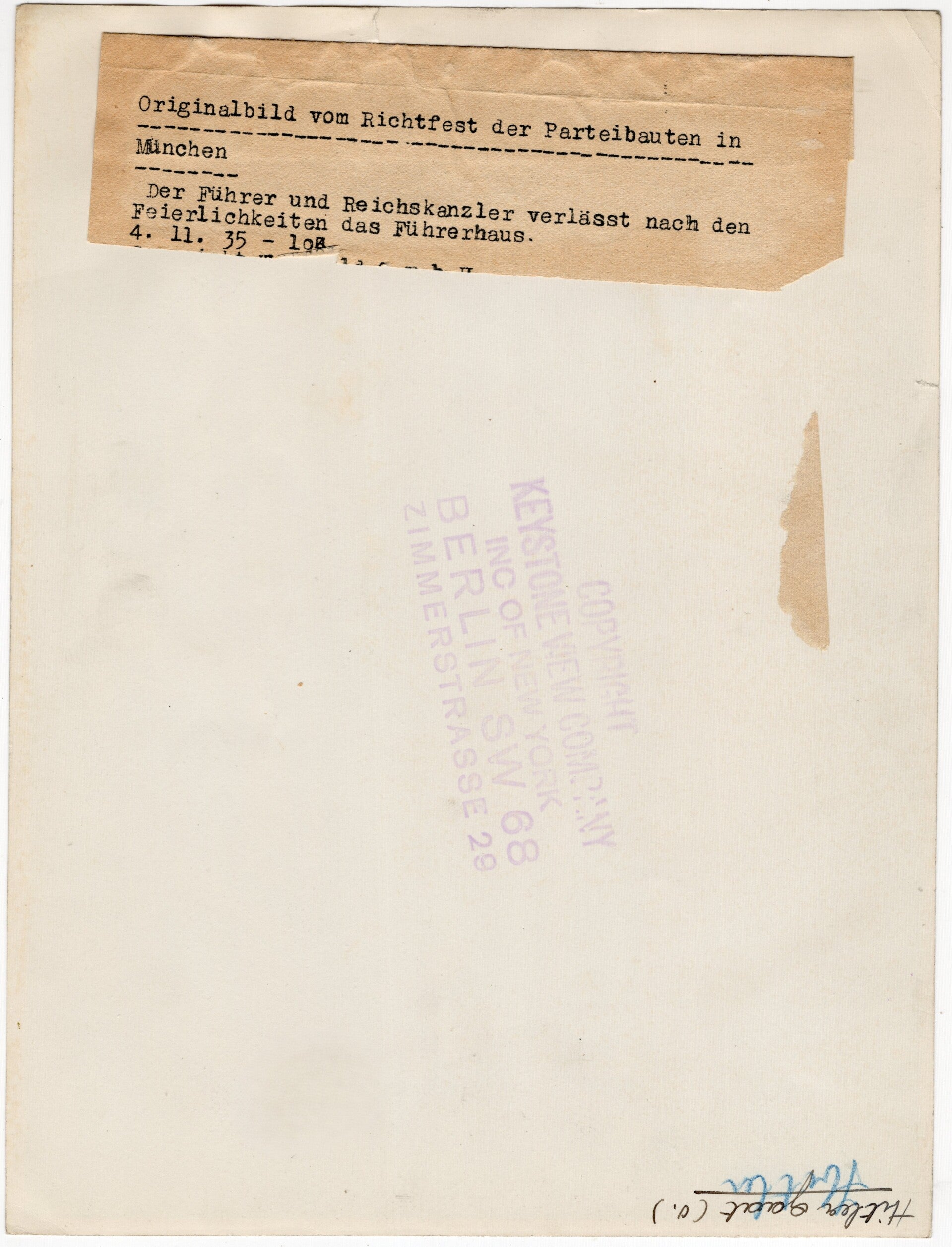 Originele Wo2 Duitse Persfoto - Adolf Hitler en Heinrich Himmler verlaten het Führerhaus, Munchen (1935)