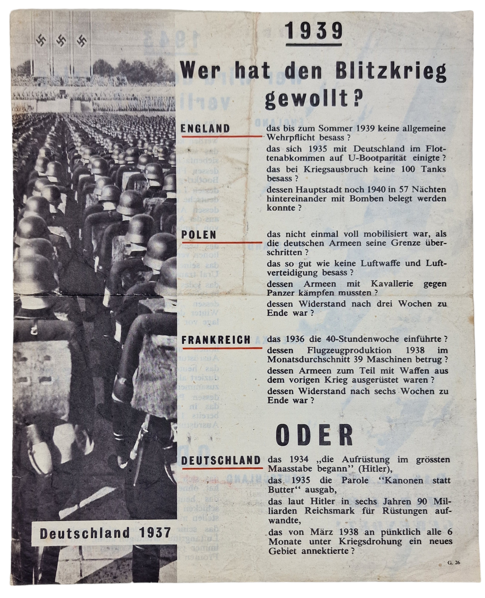 Original WW2 British Leaflet - G 26 Wer hat den Blitzkrieg gewollt? (1943)