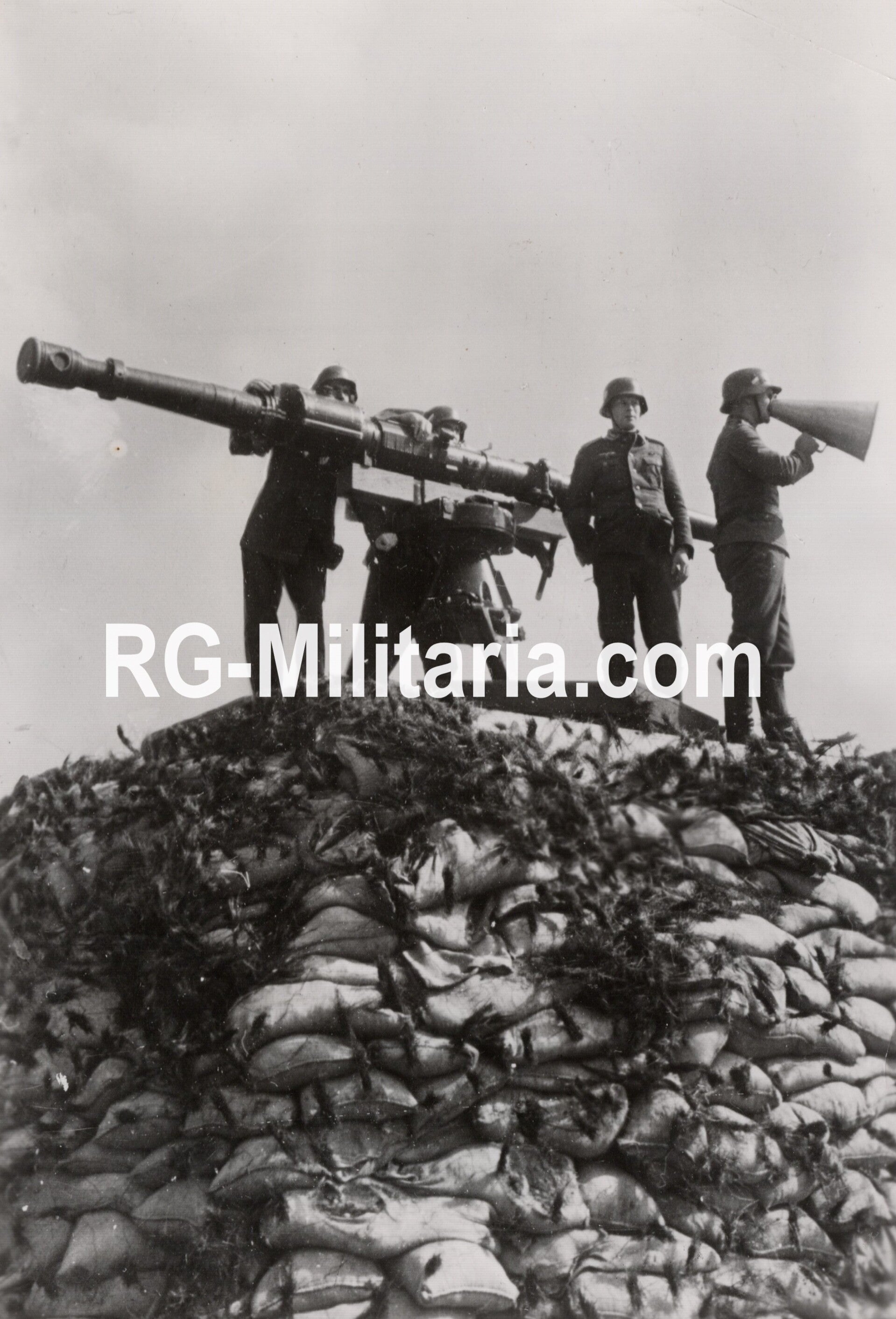 Originele Wo2 Duitse Persfoto - Marineartillerie met een entfernungsmesser aan het kanaal (1941)