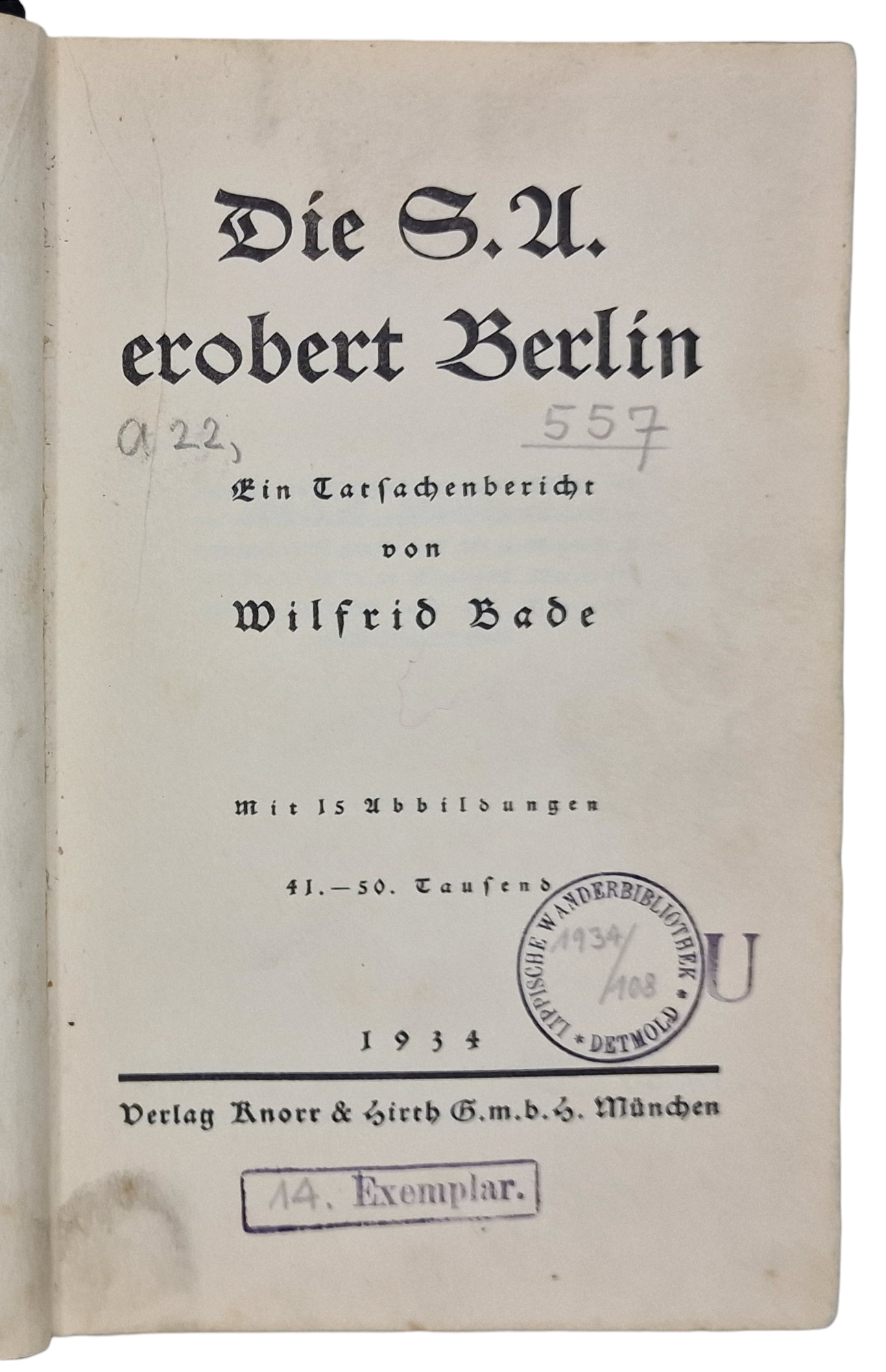 Original WW2 German Book - Die SA erobert Berlin, Wilfrid Bade (1934)