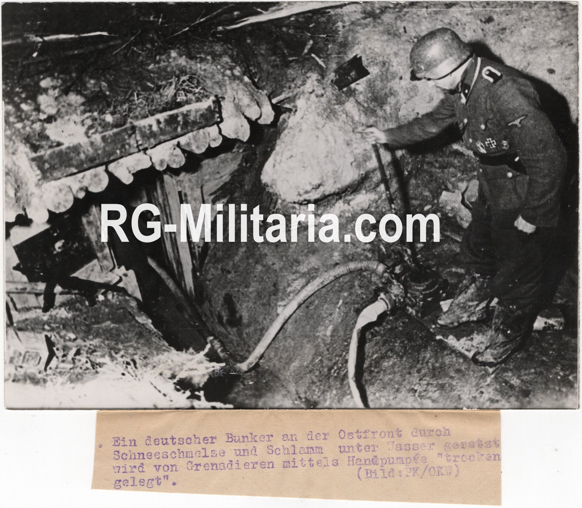 Originele Wo2 Duitse Persfoto - SS militair pompt een bunker leeg, Oostfront