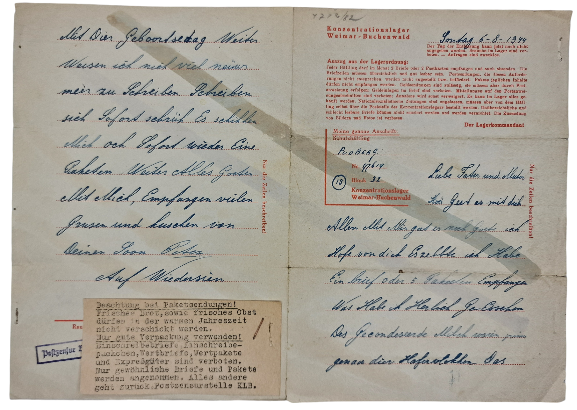 Original WW2 German Concentration Camp Letter - Dutch prisoner in Konzentrationslager Weimar Buchenwald (1944 1945)
