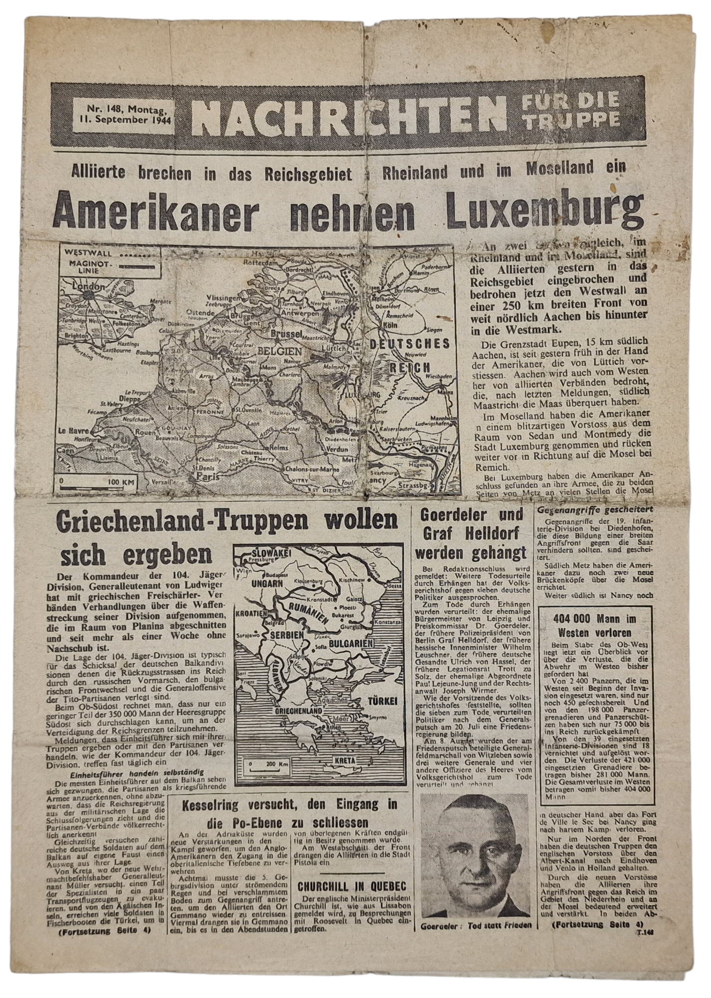 Original WW2 British Leaflet - Nachrichten für die Truppe Nr. 148, Luxemburg (1944)