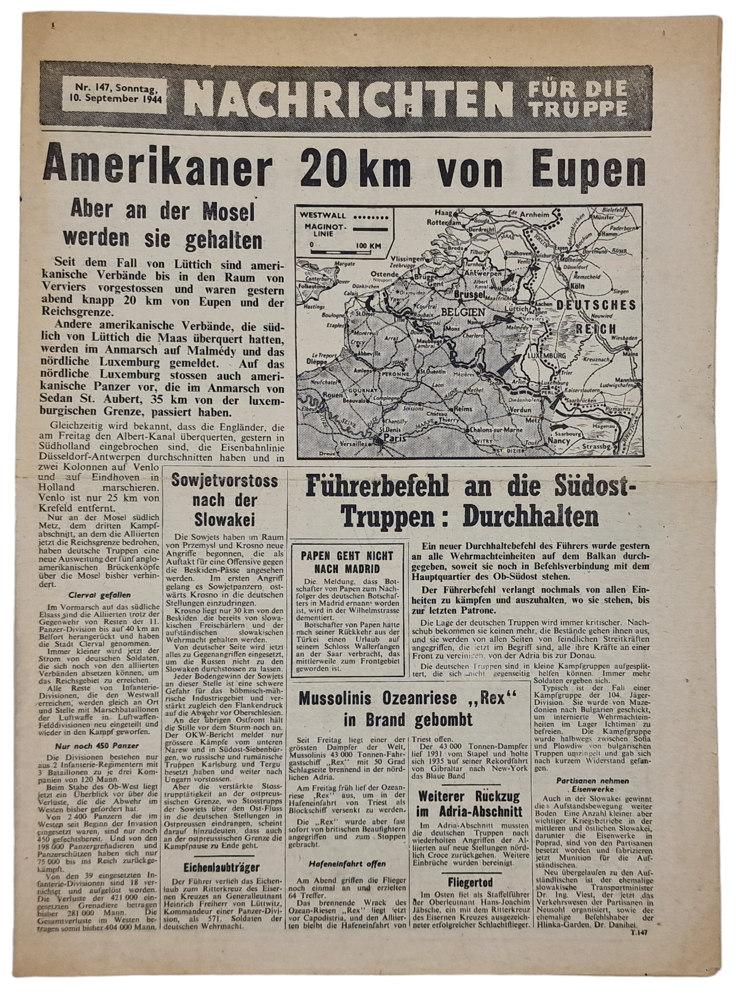 Original WW2 British Leaflet - Nachrichten für die Truppe Nr. 147, Eupen (1944)