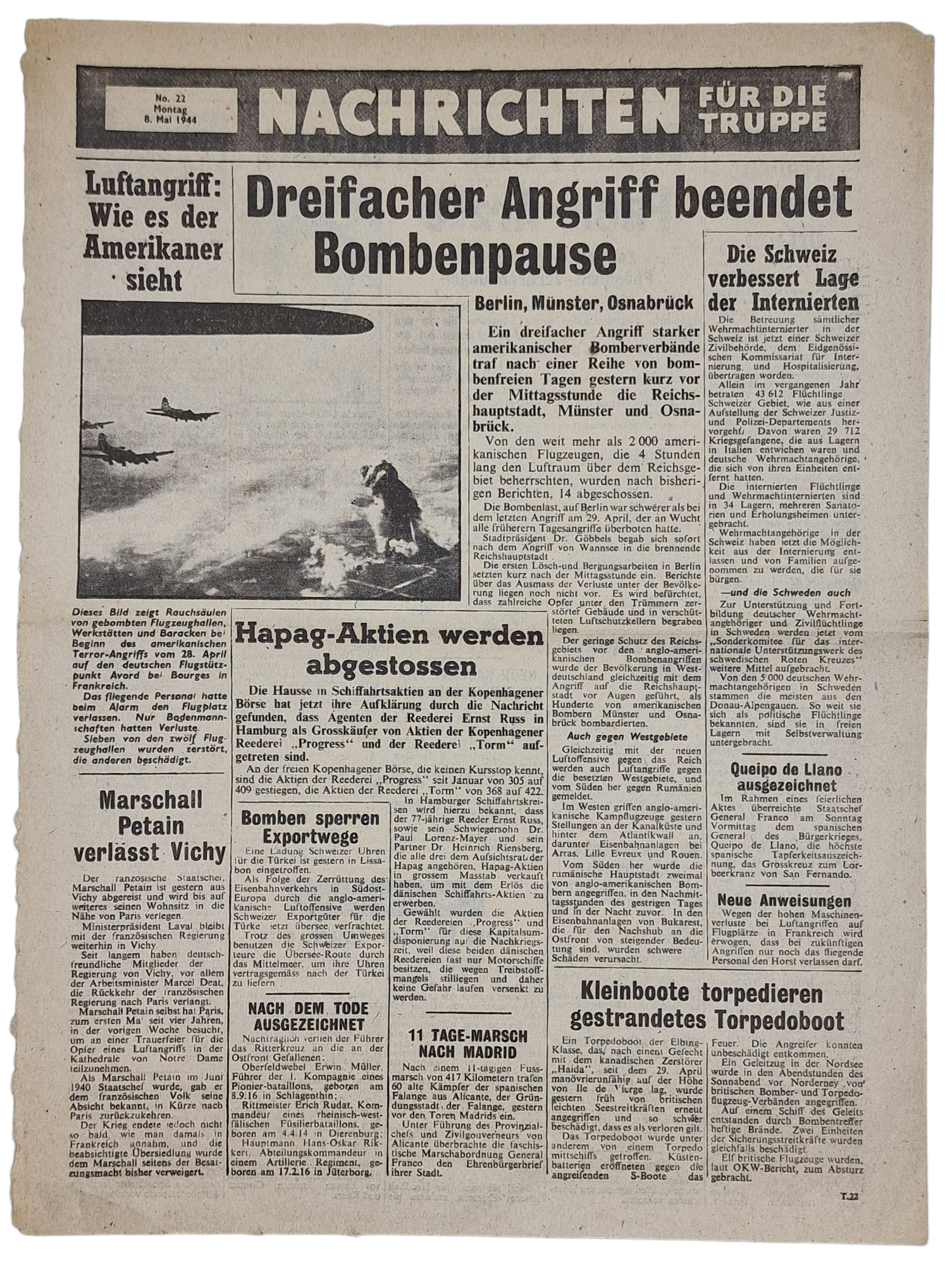 Original WW2 British Leaflet - Nachrichten für die Truppe Nr. 22, Bombing of Berlin, Münster & Osnabrück (1944)