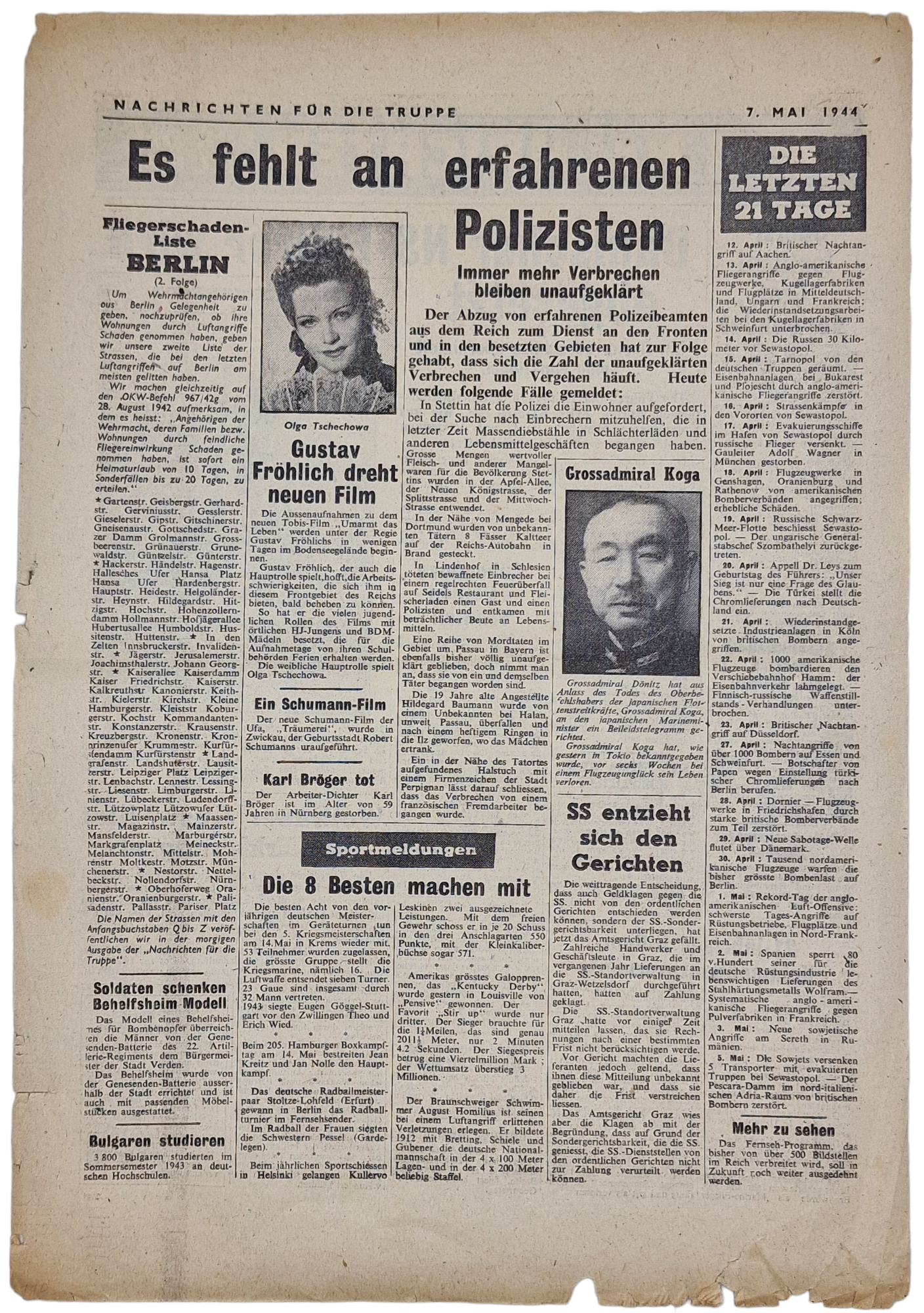 Original WW2 British Leaflet - Nachrichten für die Truppe Nr. 21, Danish Nazi Fritz Klausen removed (1944)