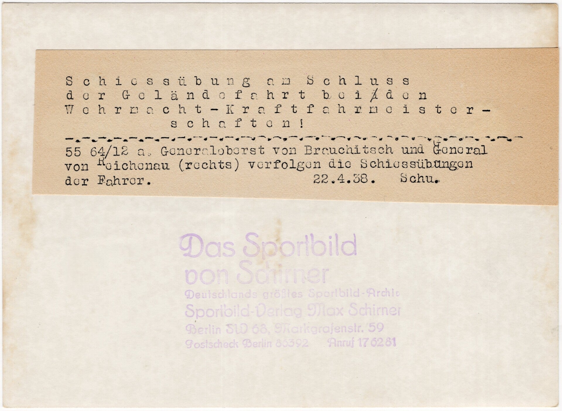 Originele Wo2 Duitse Persfoto - Generaloberst Walther von Brauchitsch en General Walther von Reichenau bij een schietbaan (1938)
