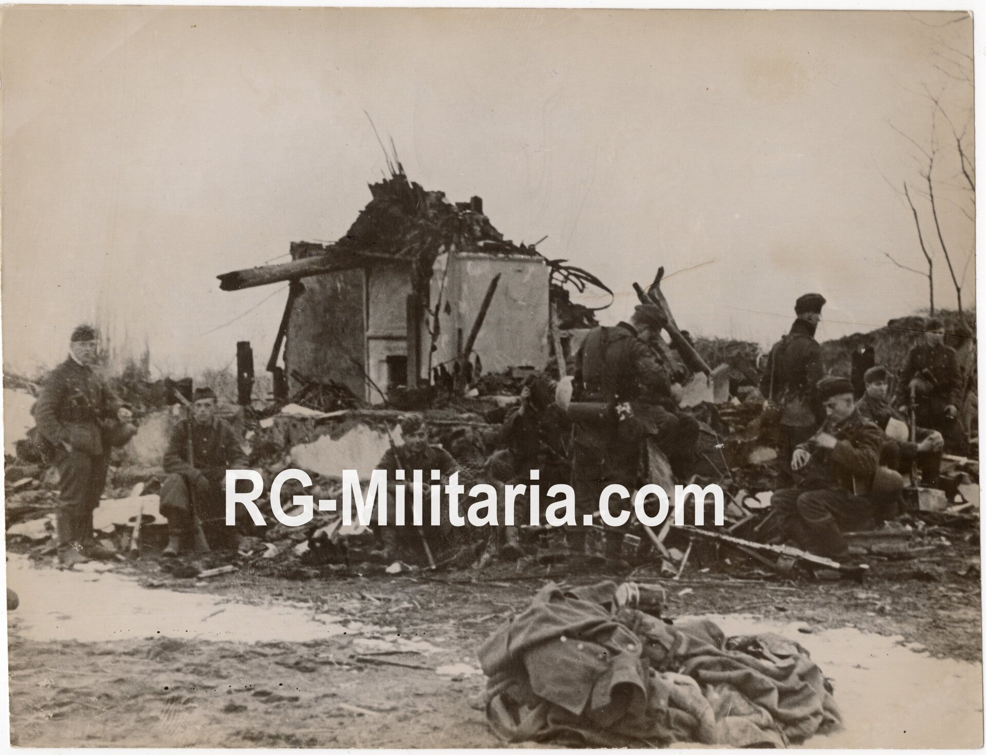 Originele Wo2 Duitse Persfoto - Duitse infanterie wacht voor de aanval (1943)
