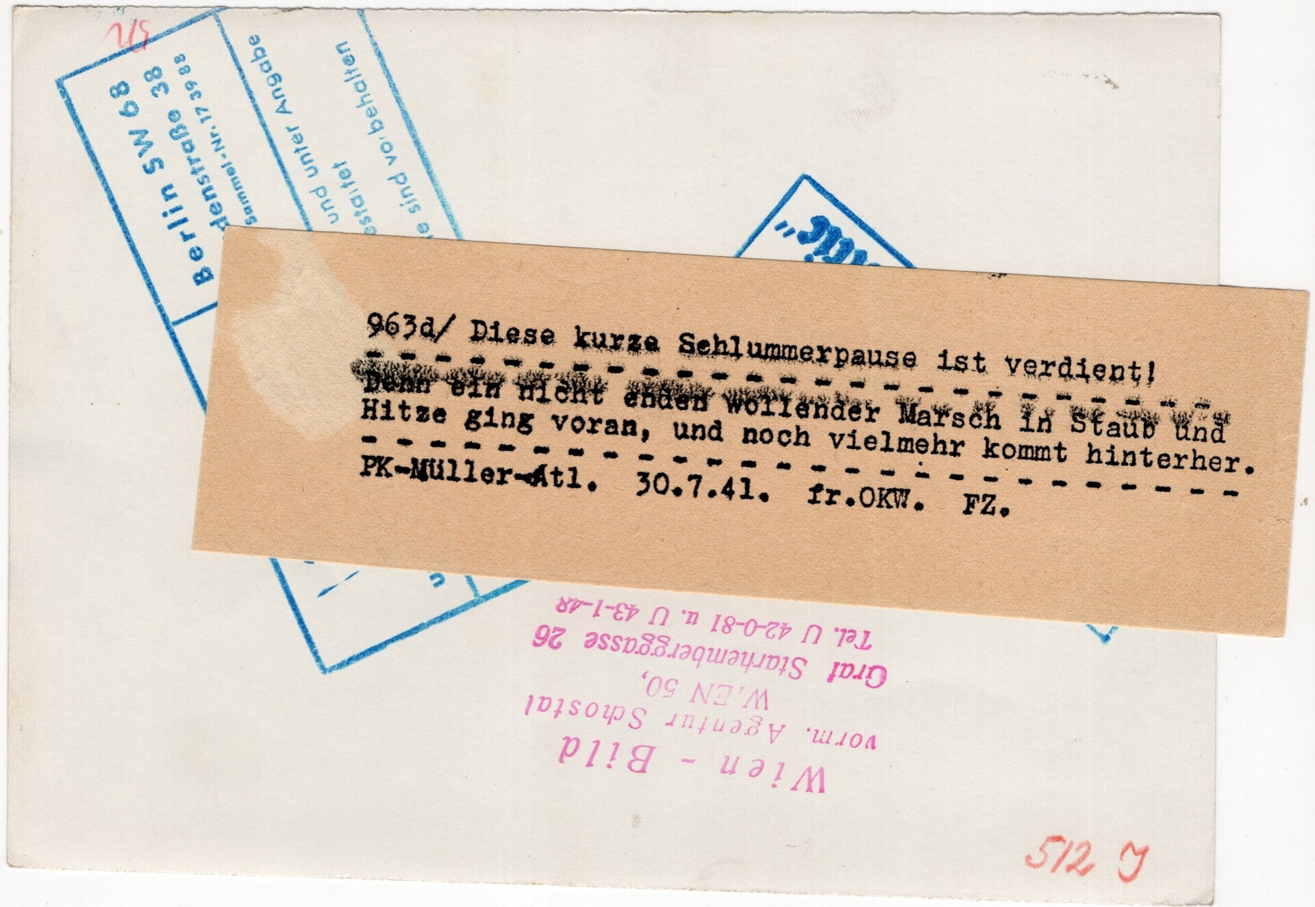 Original WW2 German Press Photo - German infantry resting after a battle, Eastern Front (1941)