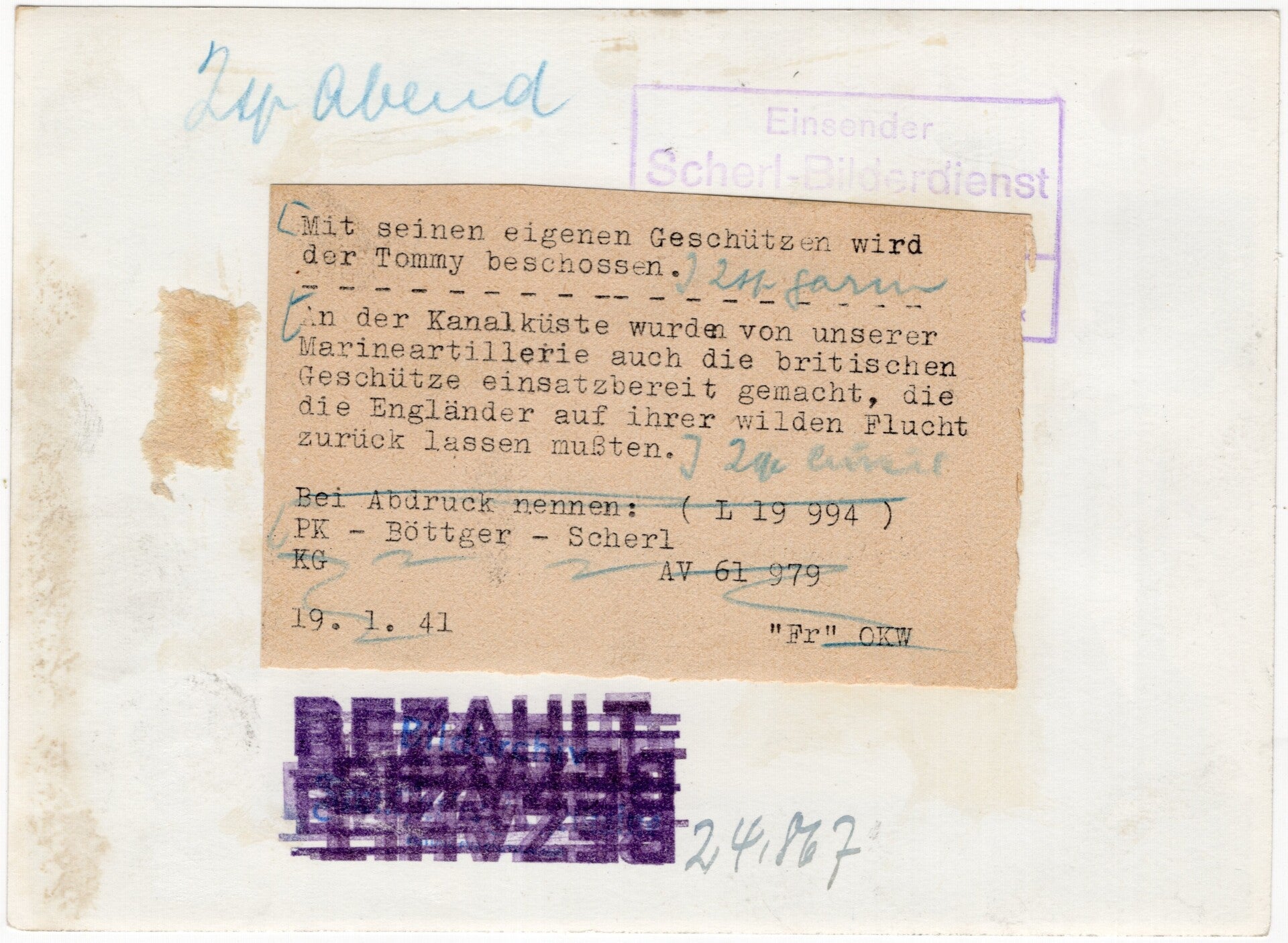 Originele Wo2 Duitse Persfoto - Duits kanon schiet naar Engeland (1941)