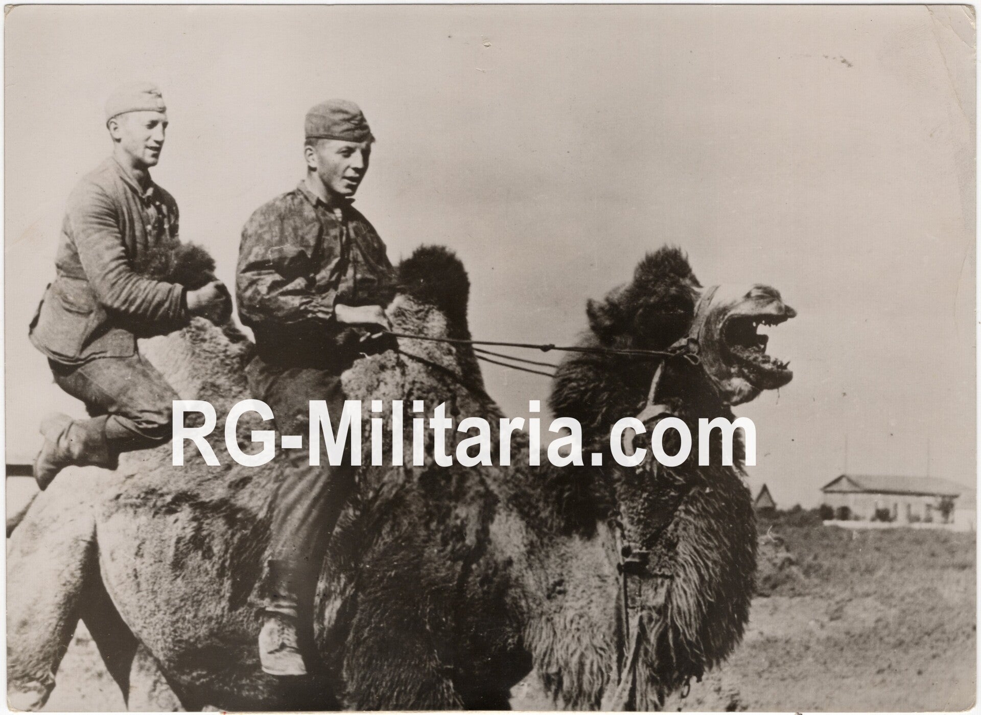 Original WW2 French Press Photo - SS soldiers riding a camel in the Soviet Union (1941)