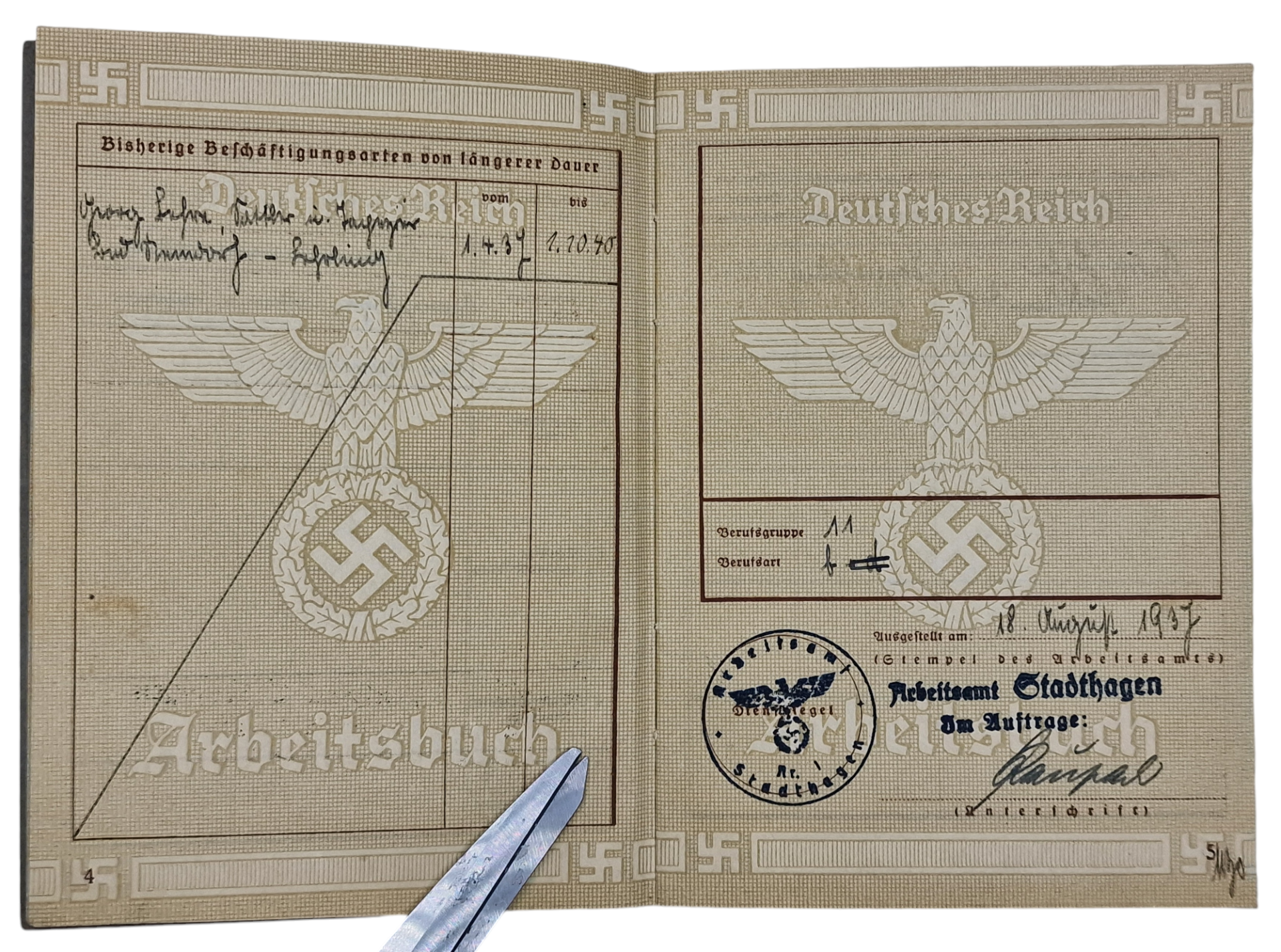Original WW2 German Document - Arbeitsbuch, Stadthagen (1937)