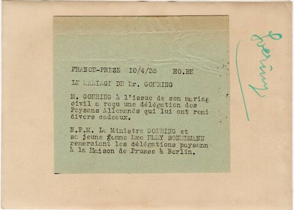 Original WW2 French Press Photo - Hermann Göring during his wedding (1935)