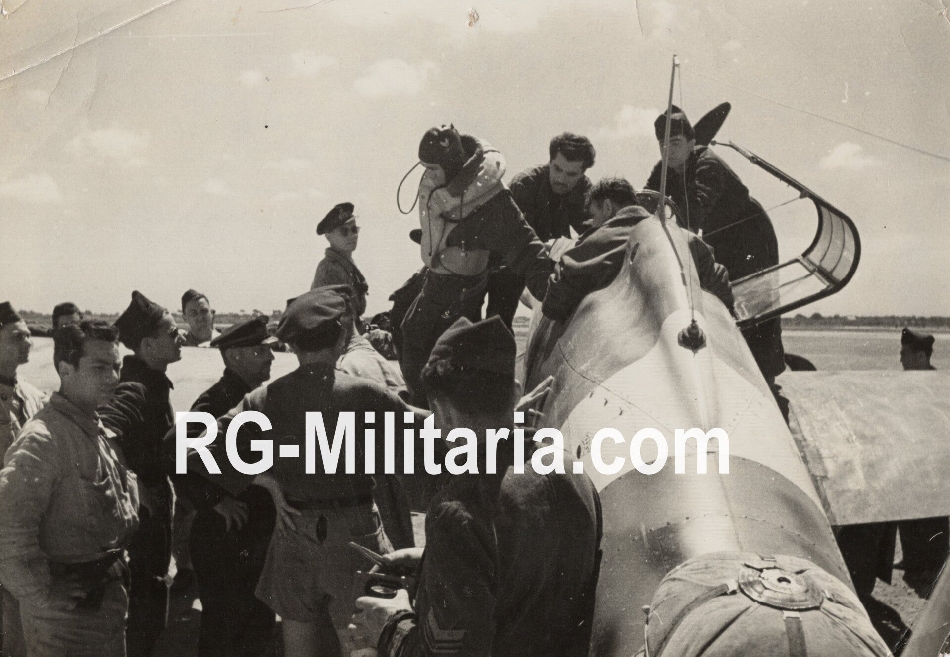 Original WW2 German Press Photo - Italian pilot gets out of his airplane (1942)