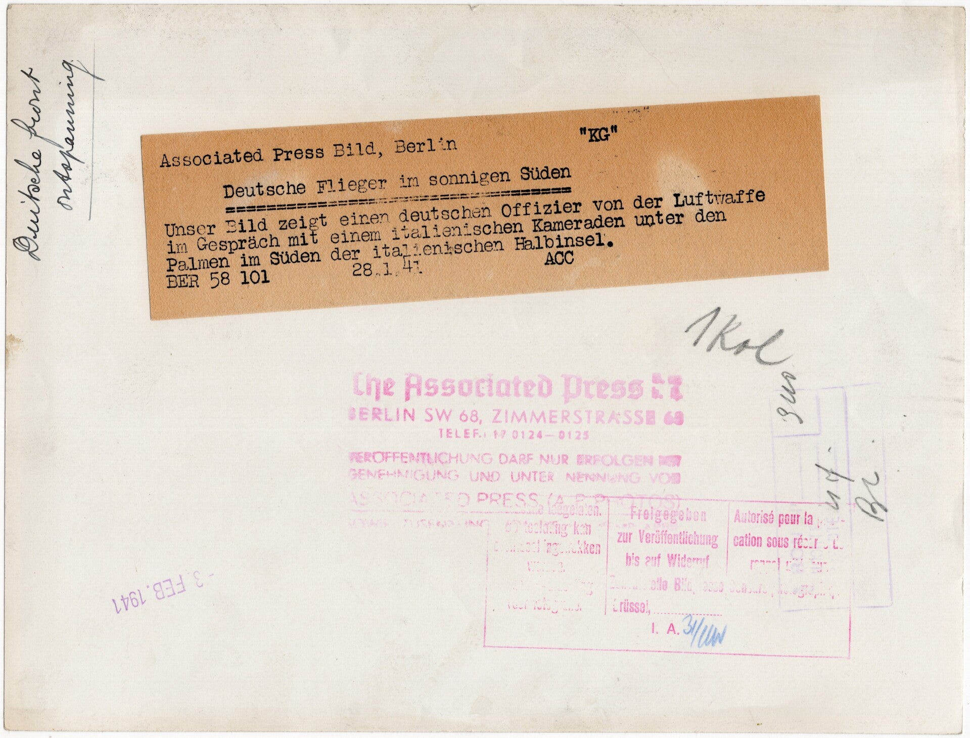 Original WW2 German Press Photo - Luftwaffe pilot with a camera in Italy (1941)