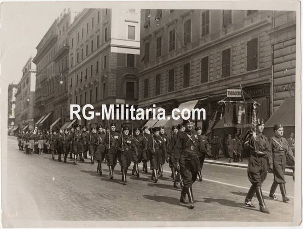 Originele Wo2 Duitse Persfoto - Italiaanse fascisten marcheren door Rome
