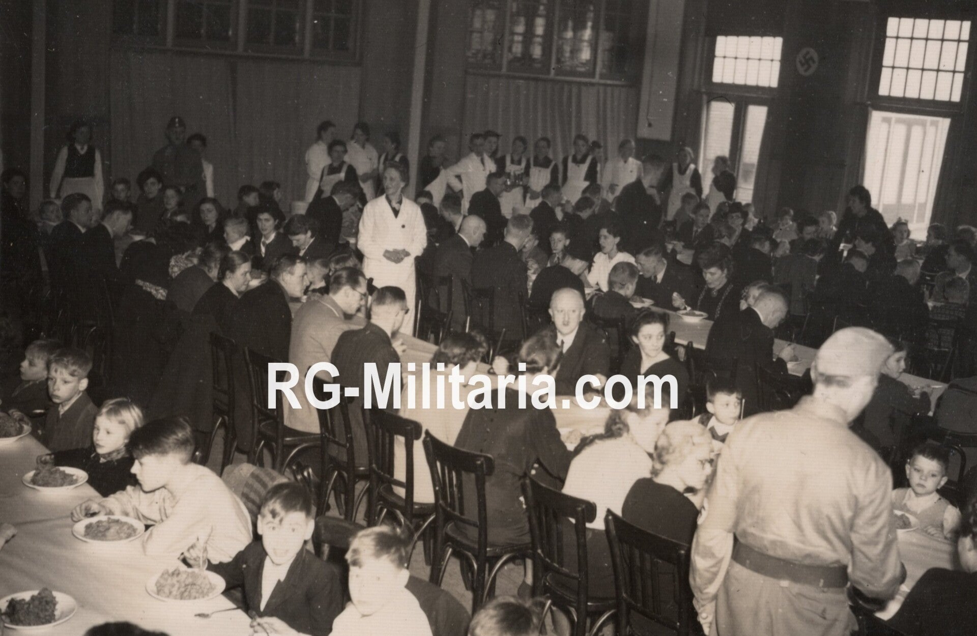 Originele Wo2 Nederlandse Collaboratie NSB Persfoto - NVD & NSV eenpansmaaltijd, NV Huis, Utrecht (1944)