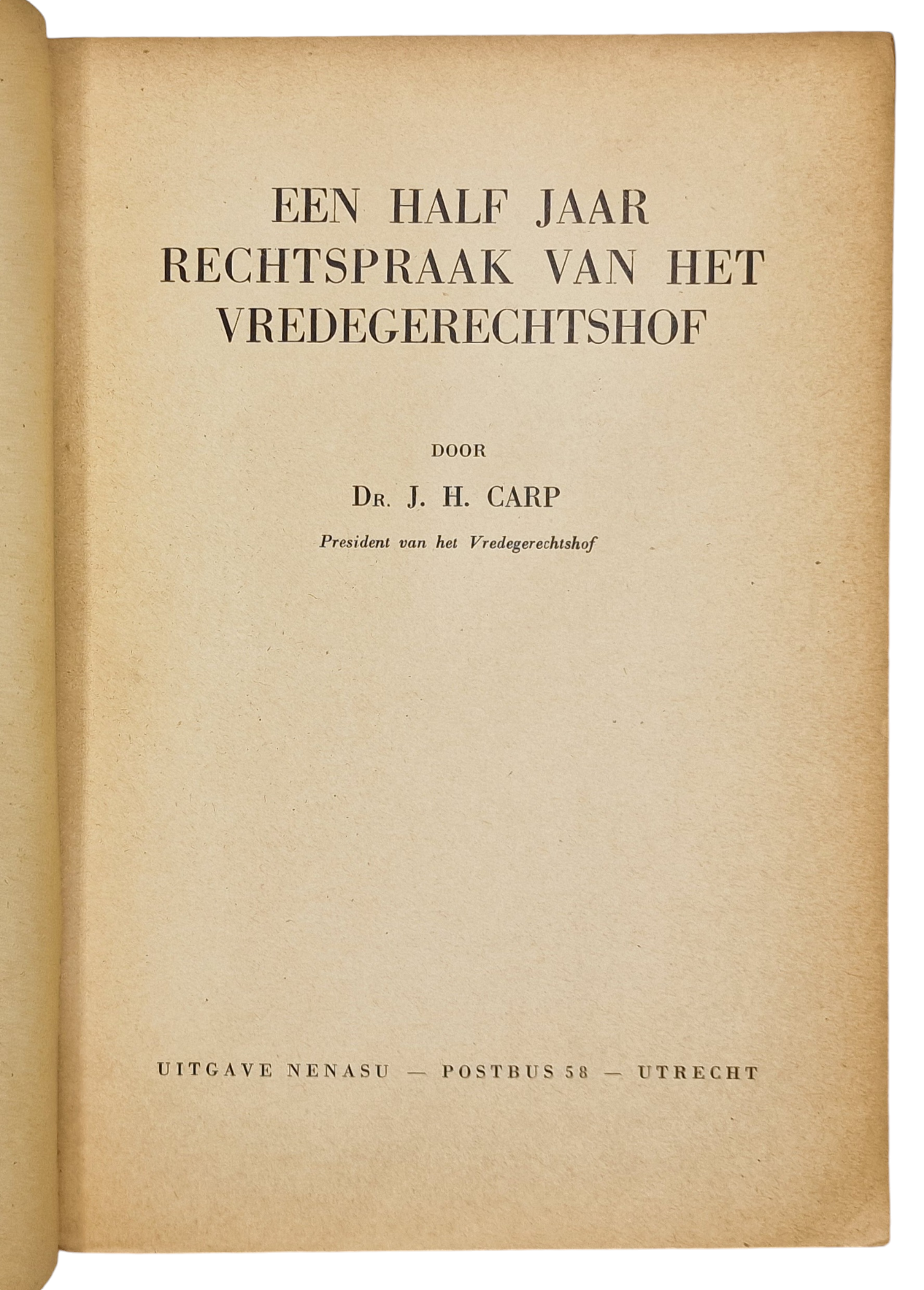 Original WW2 Dutch Collaboration NSB Brochure - 1/2 jaar vredesgerechtshof, J. H. Carp (1942)