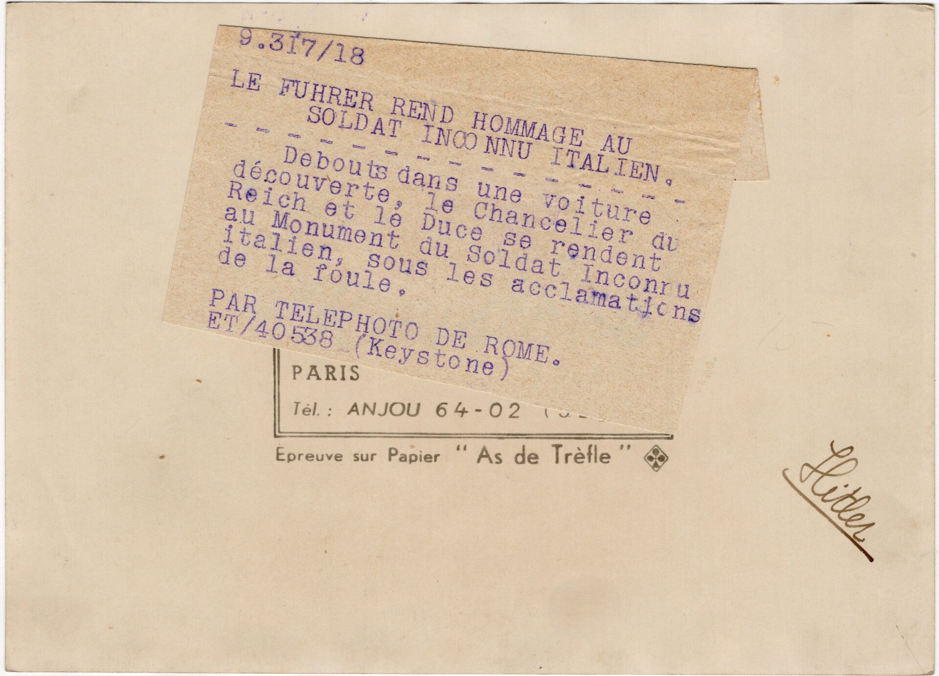 Original WW2 French Press Photo - Adolf Hitler and Benito Mussolini in Rome, Italy