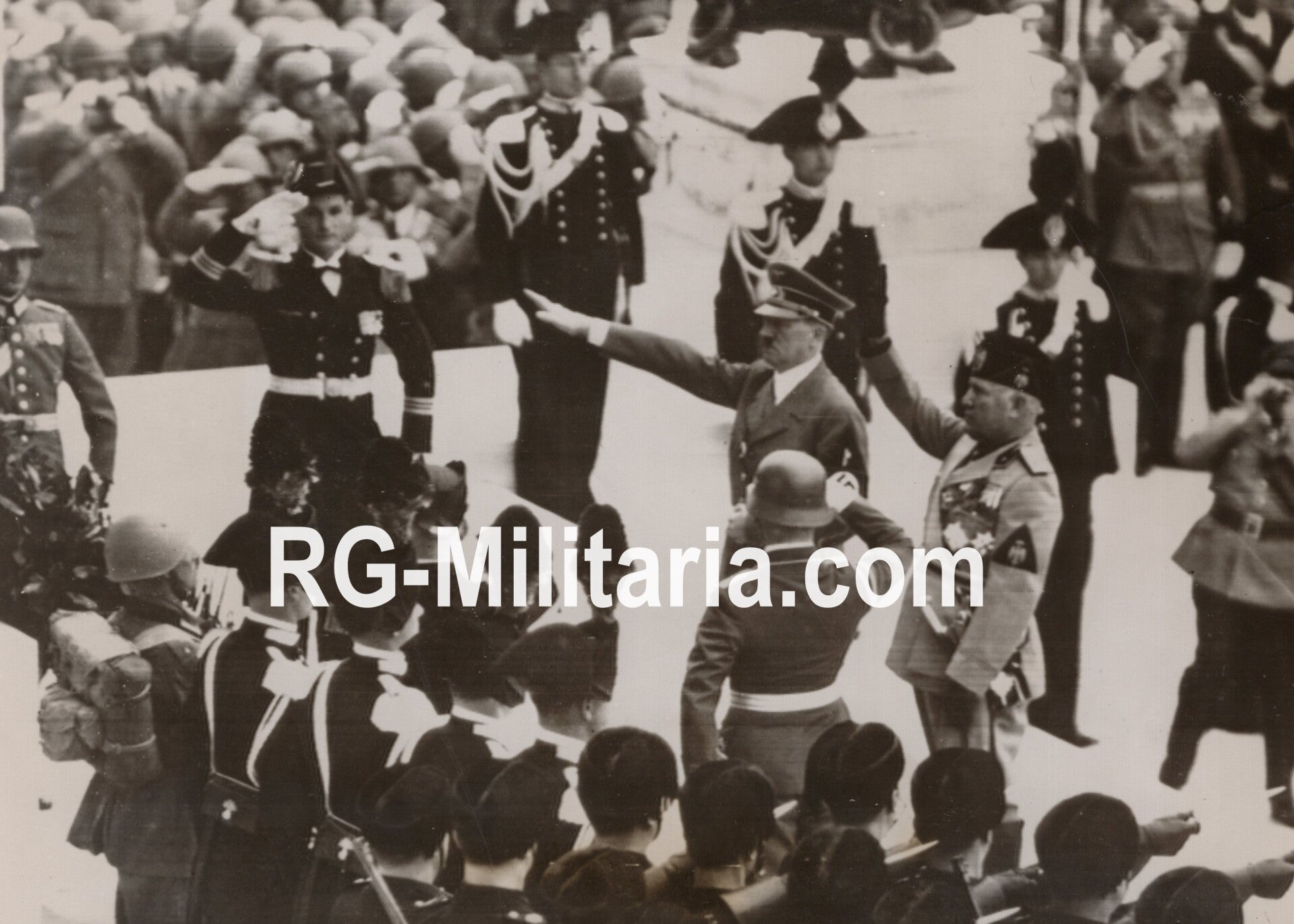 Original WW2 French Press Photo - Adolf Hitler and Benito Mussolini in Rome, Italy