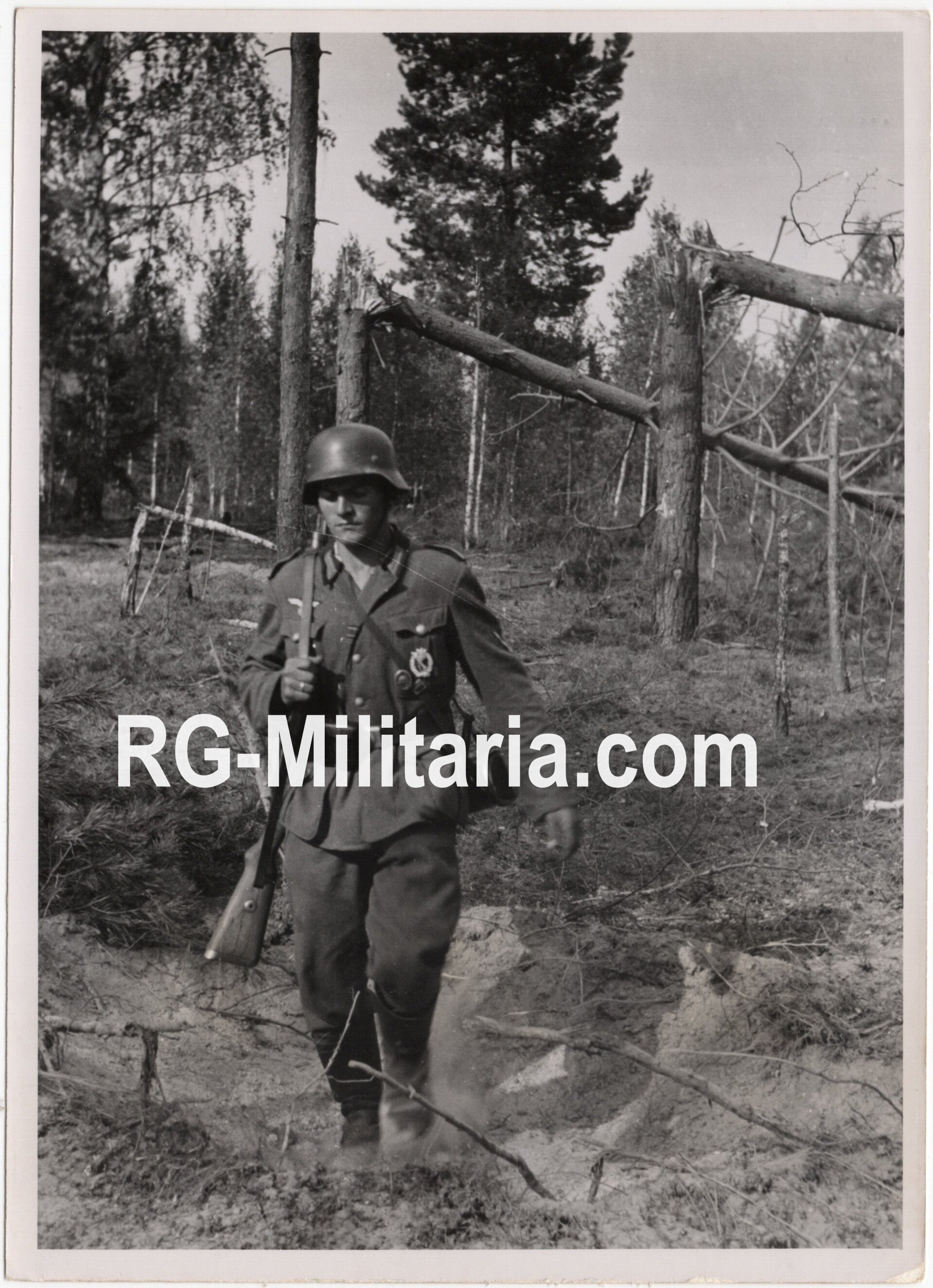 Original WW2 German Press Photo - German soldier in the woods