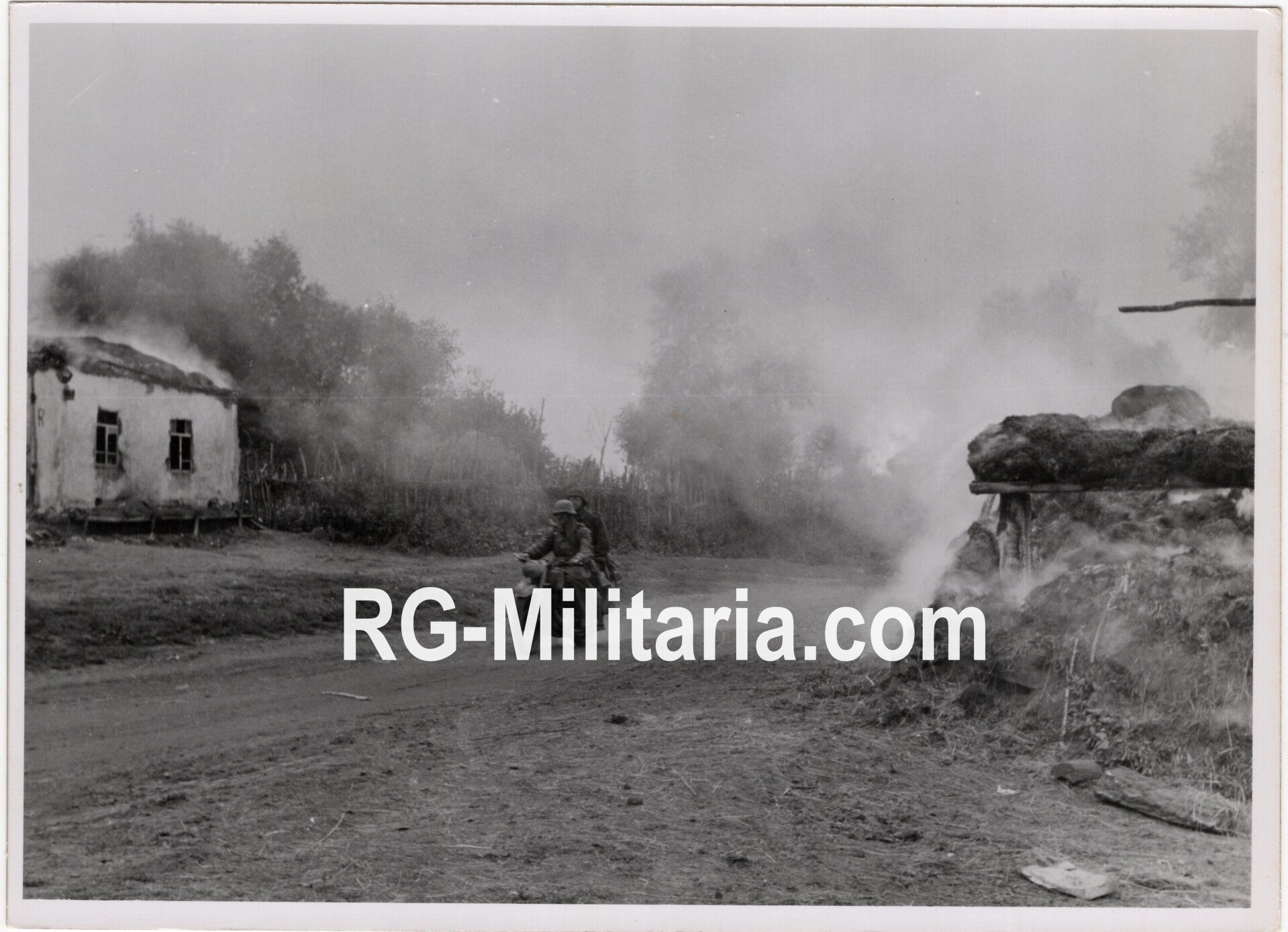 Original WW2 German Press Photo - Germans on their motorcycle at the Eastern Front