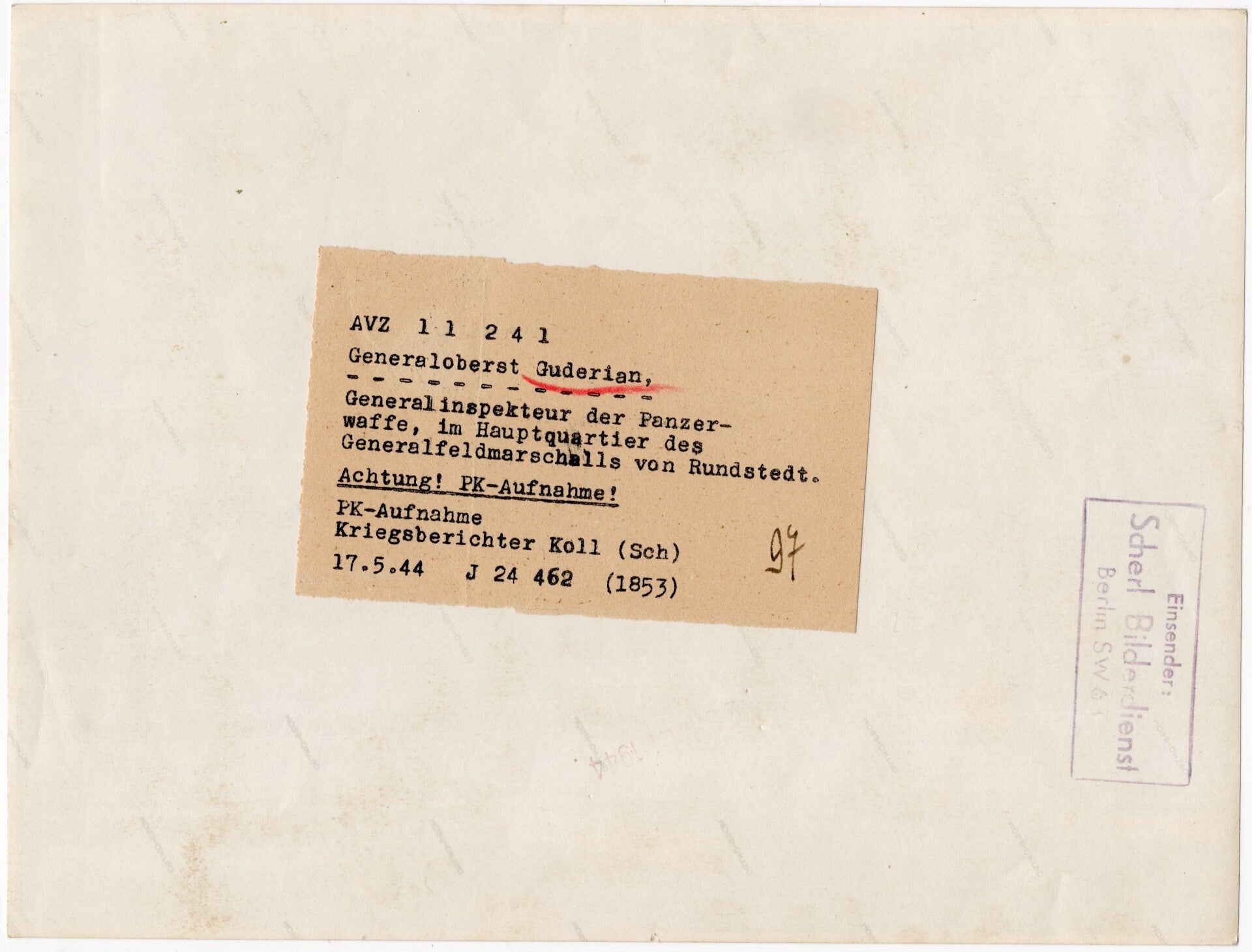 Original WW2 German Press Photo - Generaloberst Heinz Guardian with Generalfeldmarschall Gerd von Rundstedt (1944)
