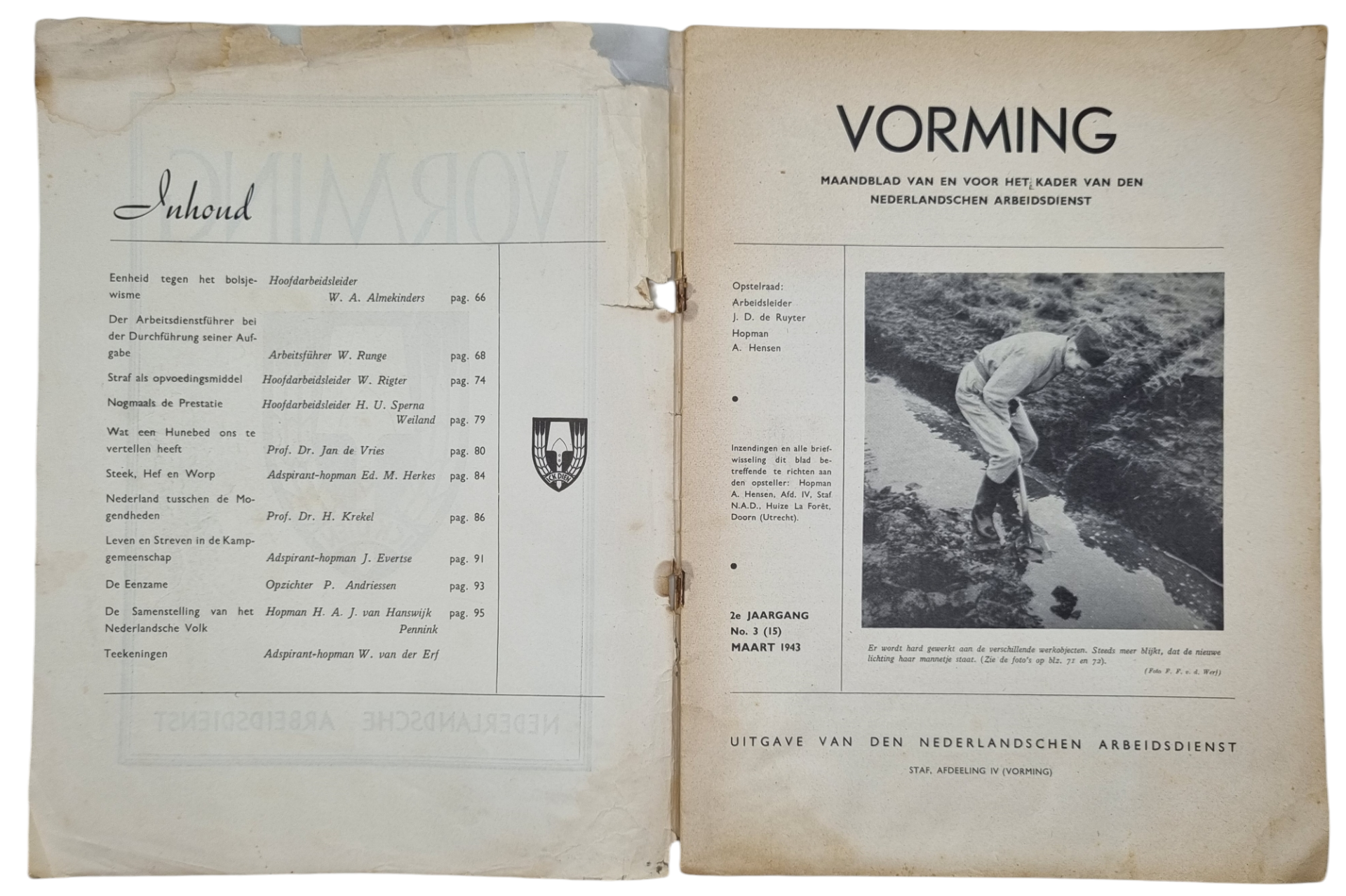 Originele Wo2 Nederlandse Collaboratie NAD Brochure - Vorming Nederlandsche Arbeidsdienst, 2nd Jaargang No. 3 (1943)