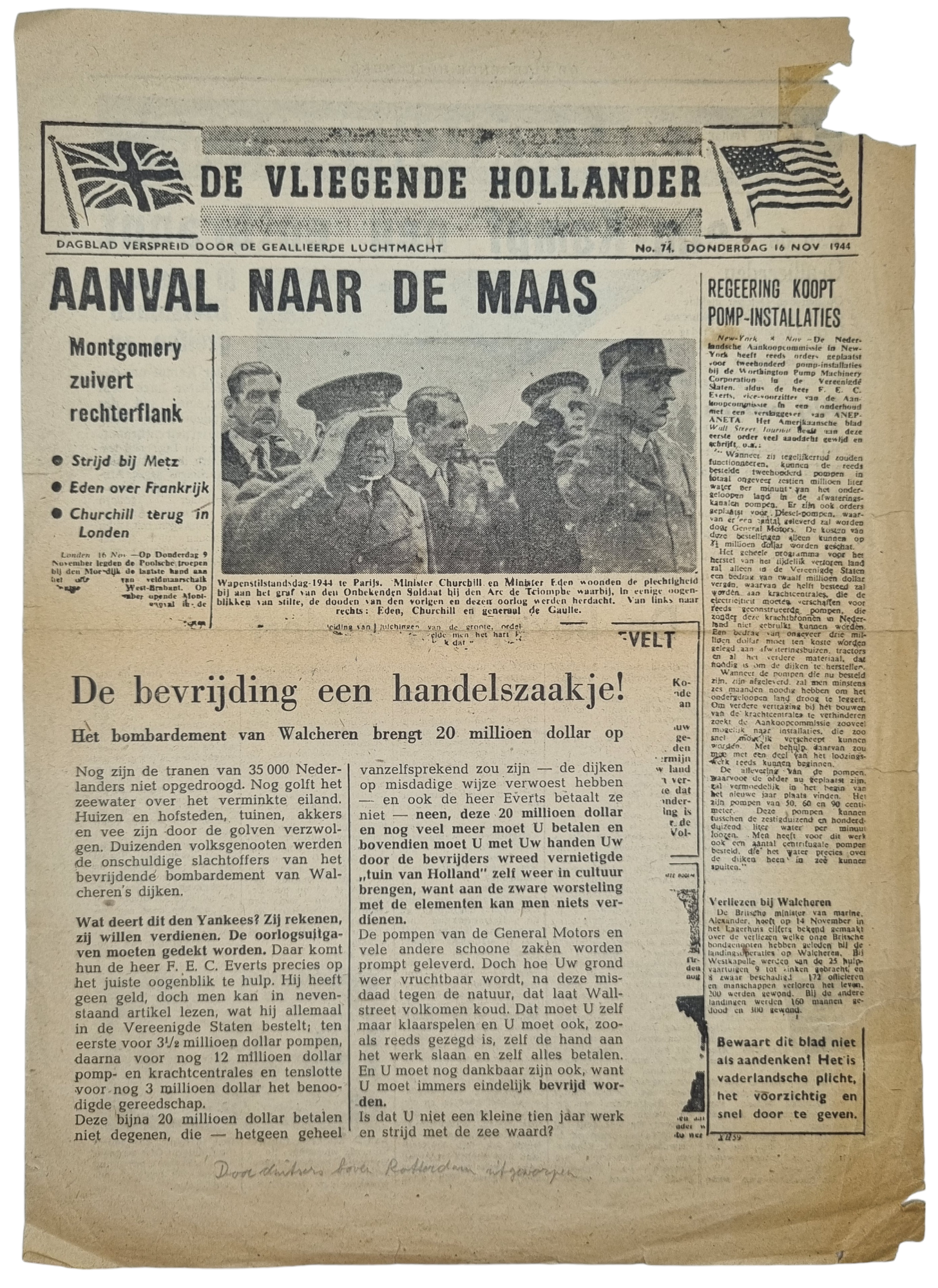 Original WW2 German leaflet - XH 39 Vliegende Hollander No 74. Black Propaganda, Walcheren (1944)