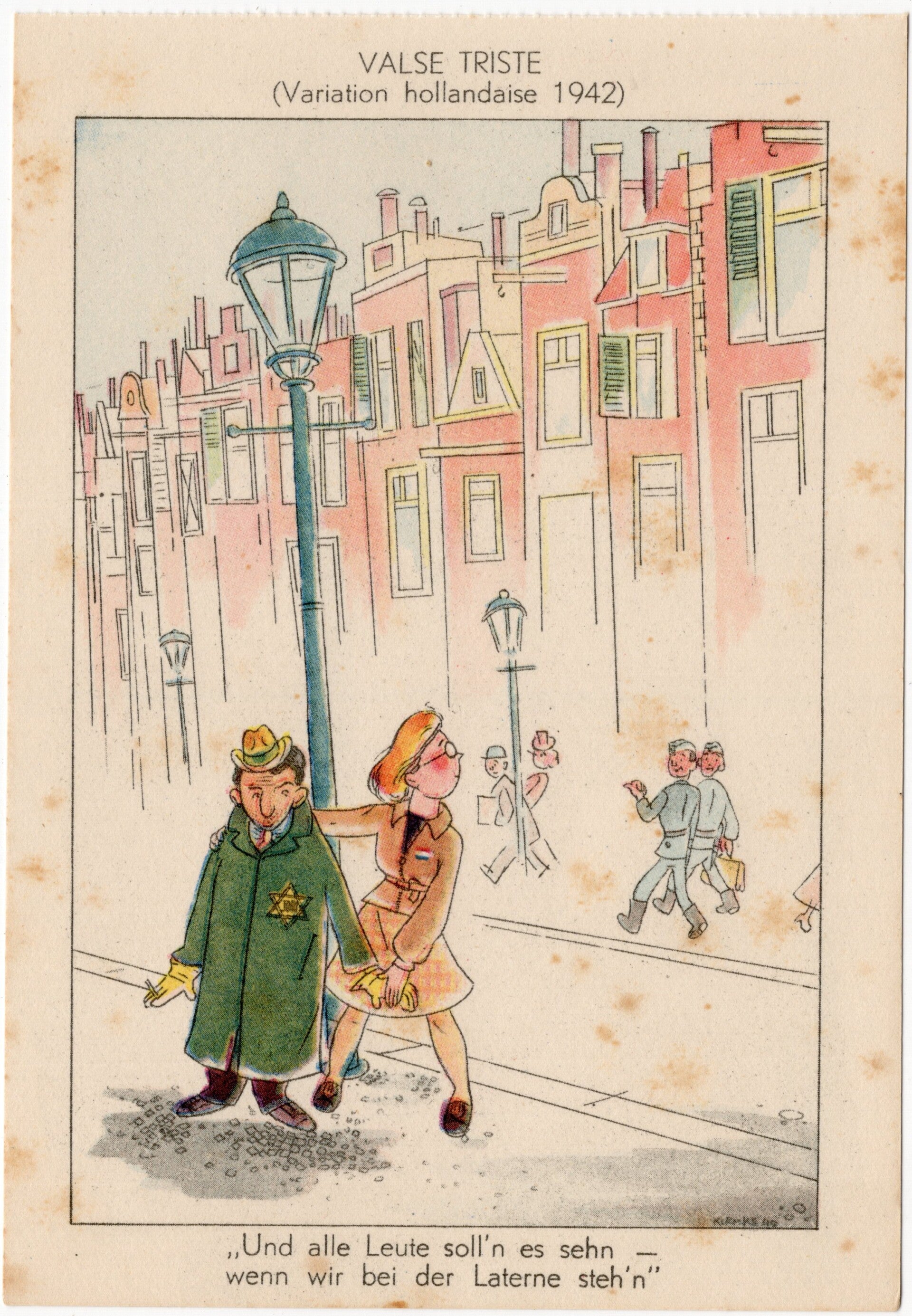 Original WW2 Dutch Collaboration NSB Postcard - ''Valse Triste'', Jewish man (1942)