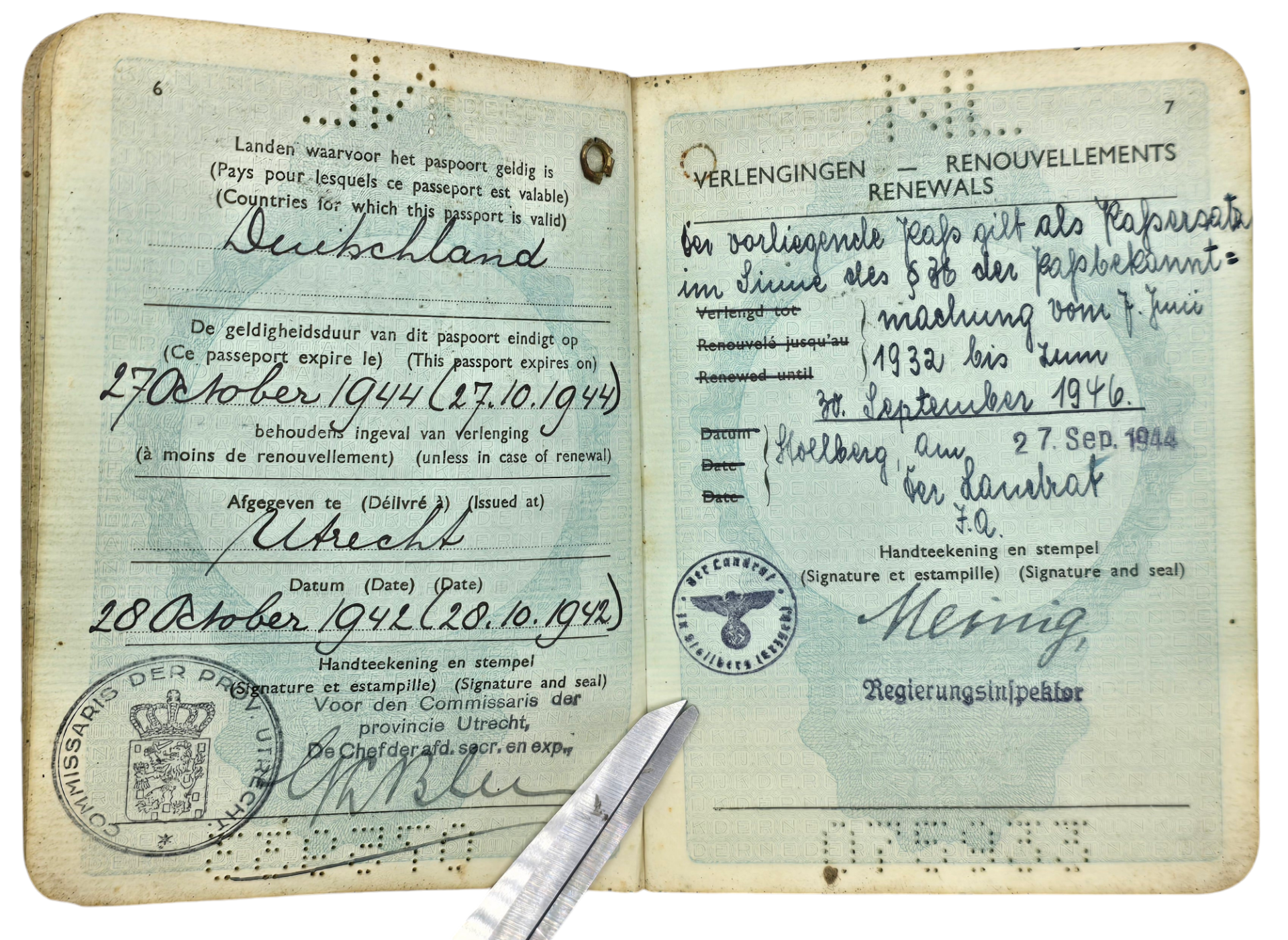 Original WW2 Dutch Document - Arbeitsbuch für Ausländer forced laborer Kockengen, Utrecht document set (1942 1945)